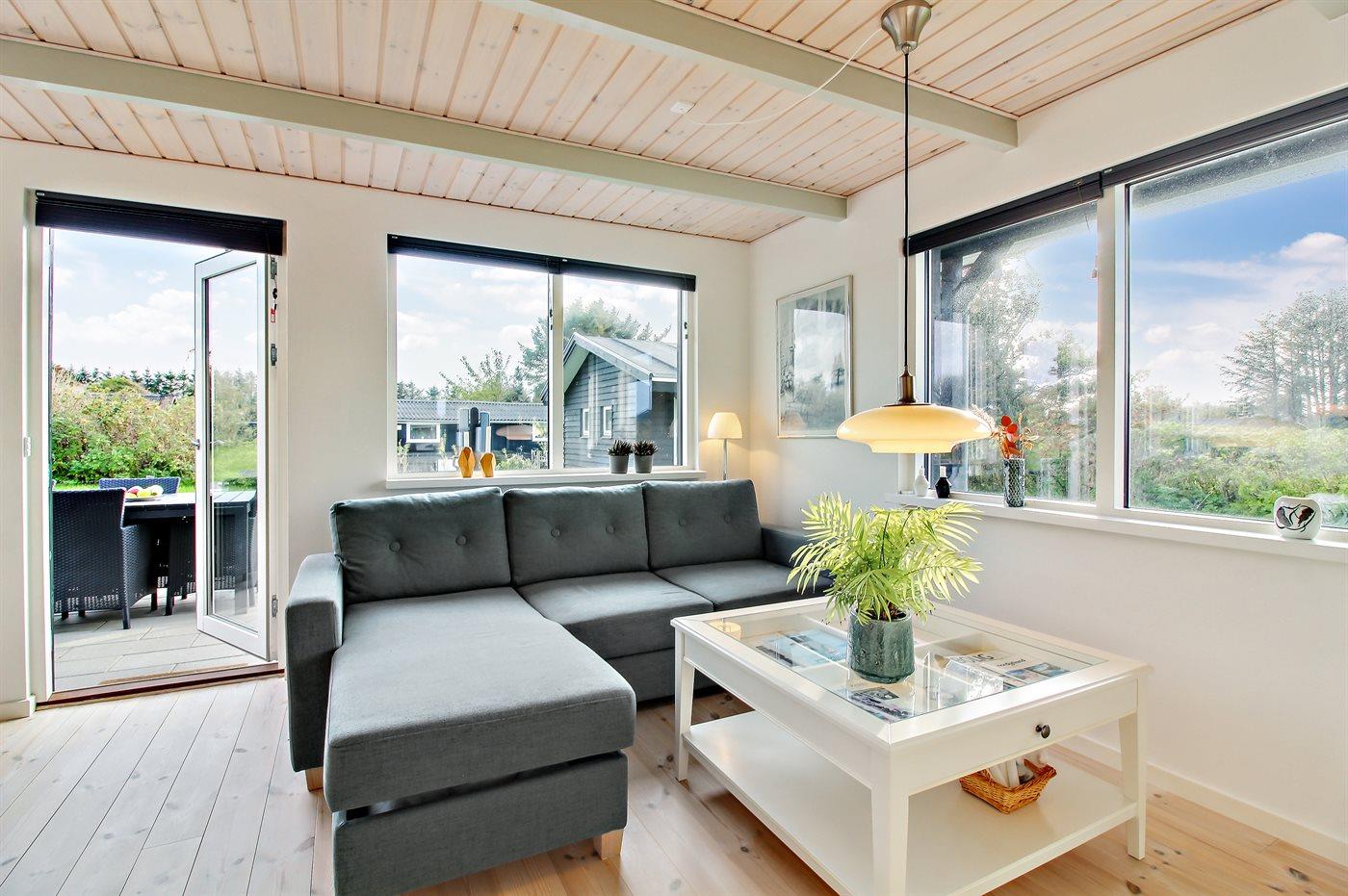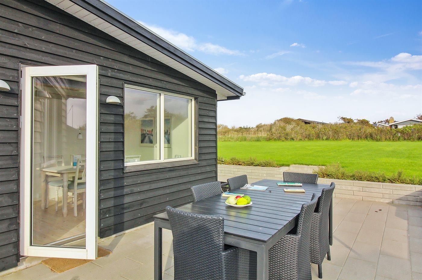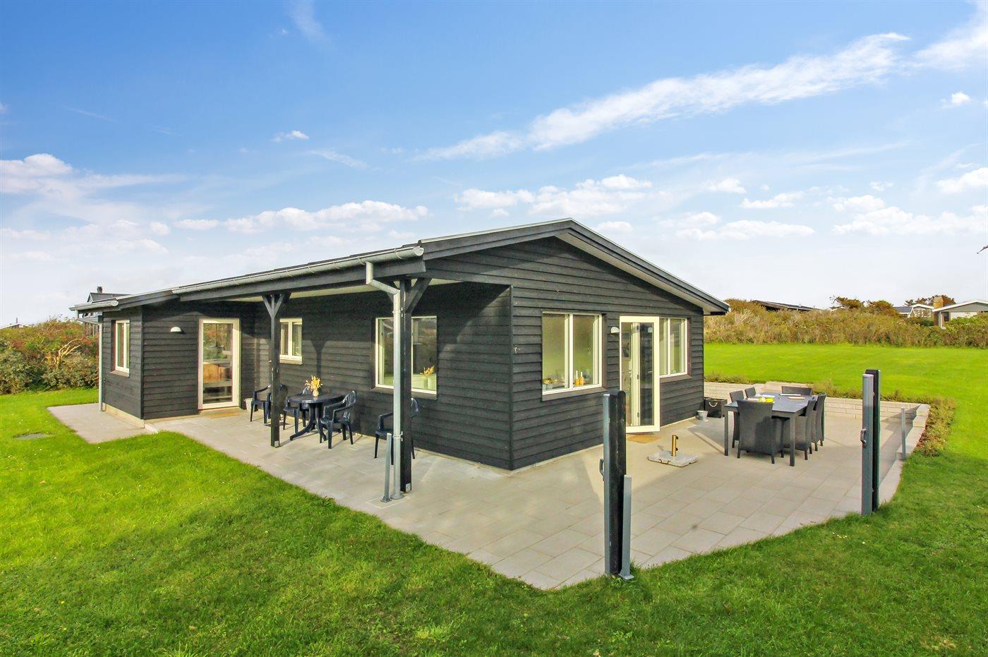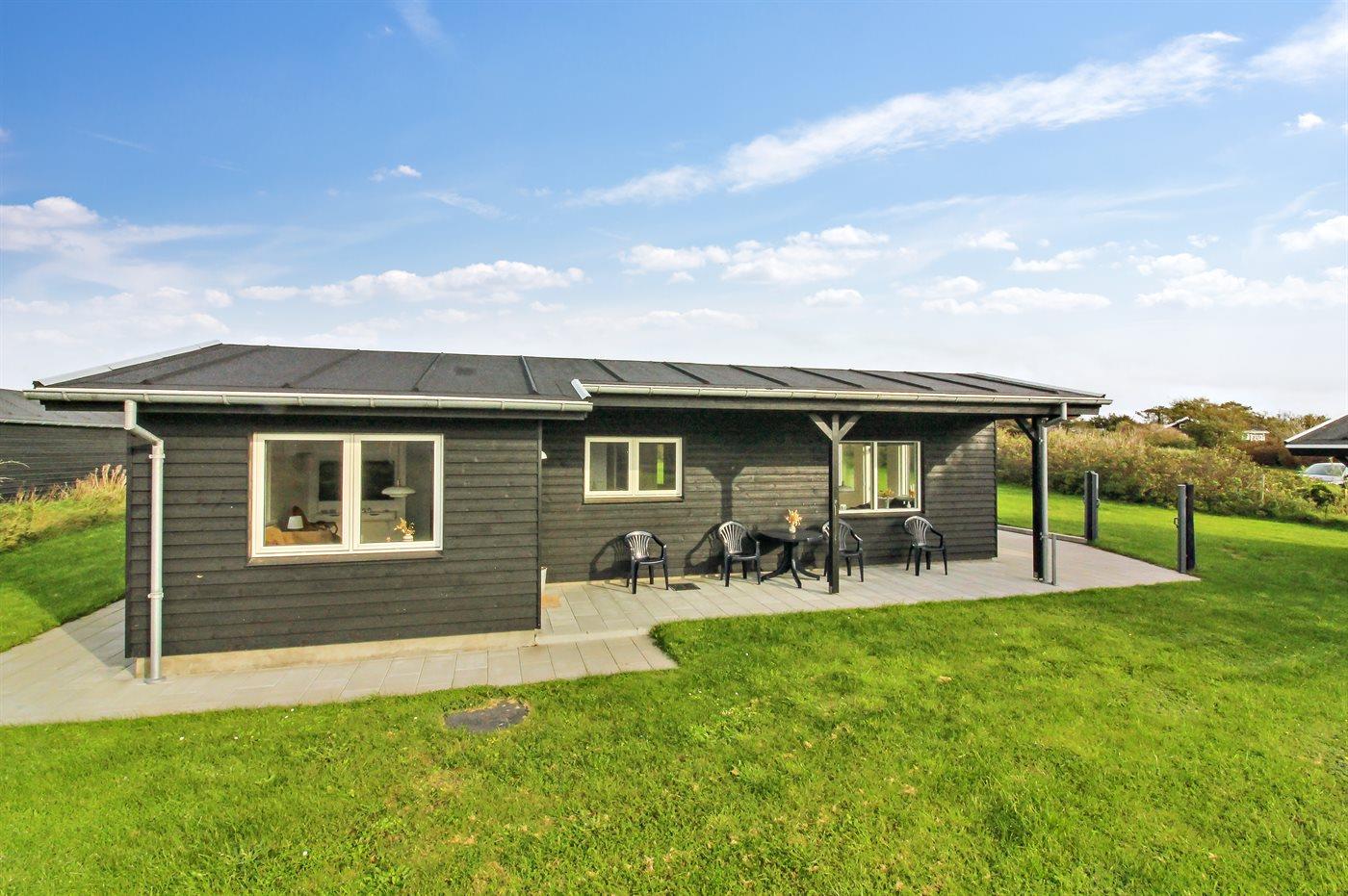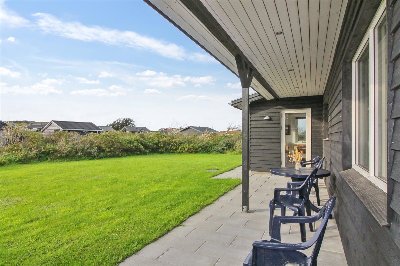 Ferieboligen er beliggende på en 1250 m² stor naturgrund. Der er 348 m til havet. Nærmeste forretning er beliggende i en afstand af 1000 m. Til ferieboligen hører 35 m² terrasseareal. Desuden er der 15 m² overdækket terrasse. Der er redskabsrum. Grill til rådighed. Parkering ved ferieboligen.