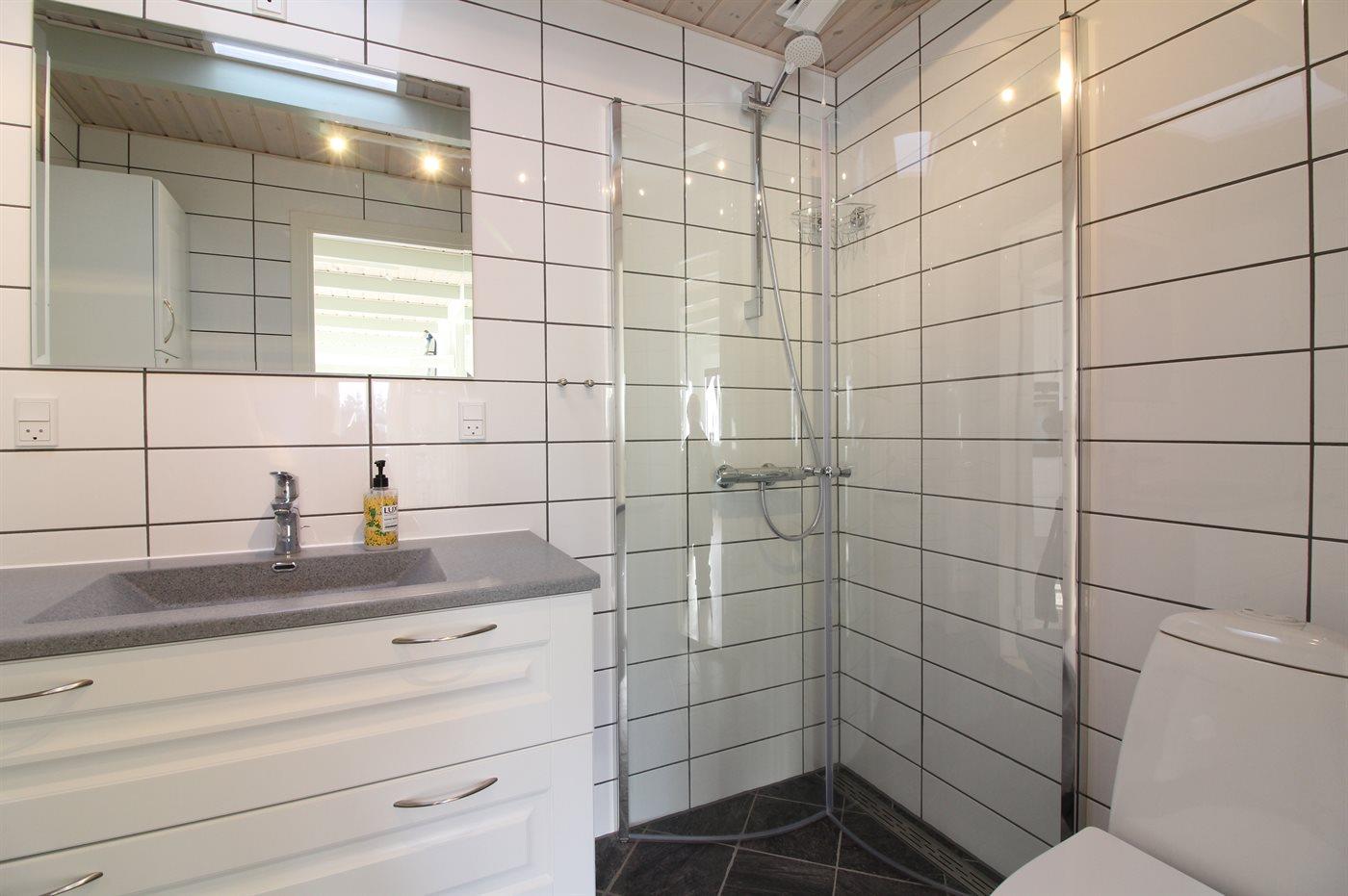Der er 1 badeværelse med bruseniche og 1 toilet.. Der er gulvvarme på 1 badeværelse.