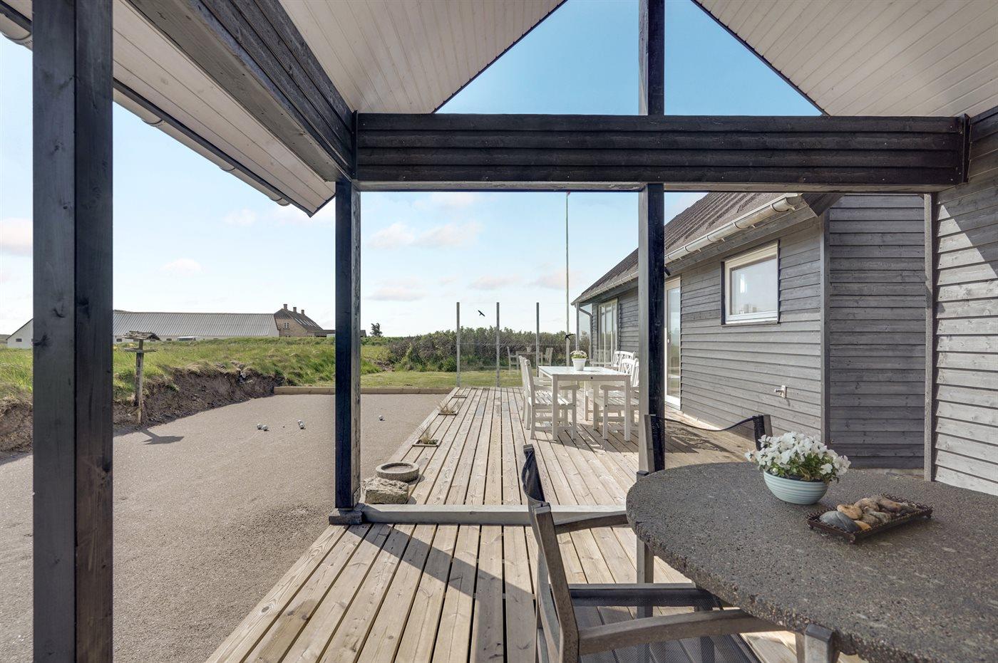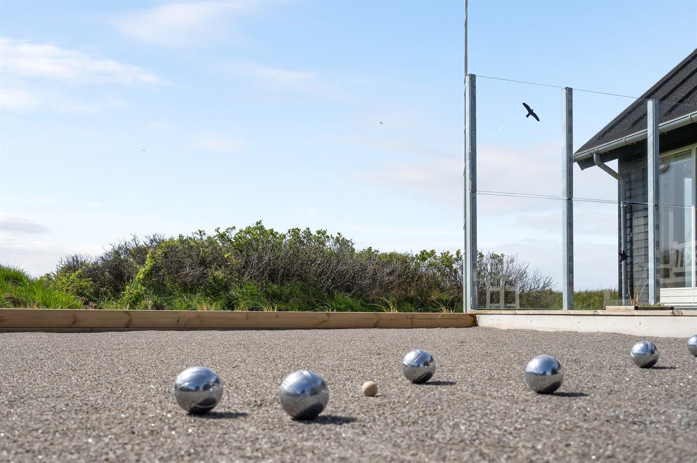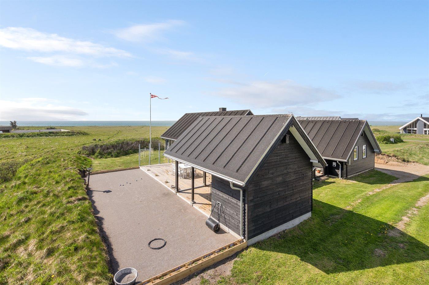 Ferieboligen er beliggende på en 1250 m² stor naturgrund. Der er 200 m til havet. Nærmeste forretning er beliggende i en afstand af 1000 m. Til ferieboligen hører 95 m² terrasseareal. Desuden er der 20 m² overdækket terrasse. Petanque. Grill til rådighed. Der er installeret stik til opladning af elbil. Med 11 kW ladeeffekt. Parkering ved ferieboligen.