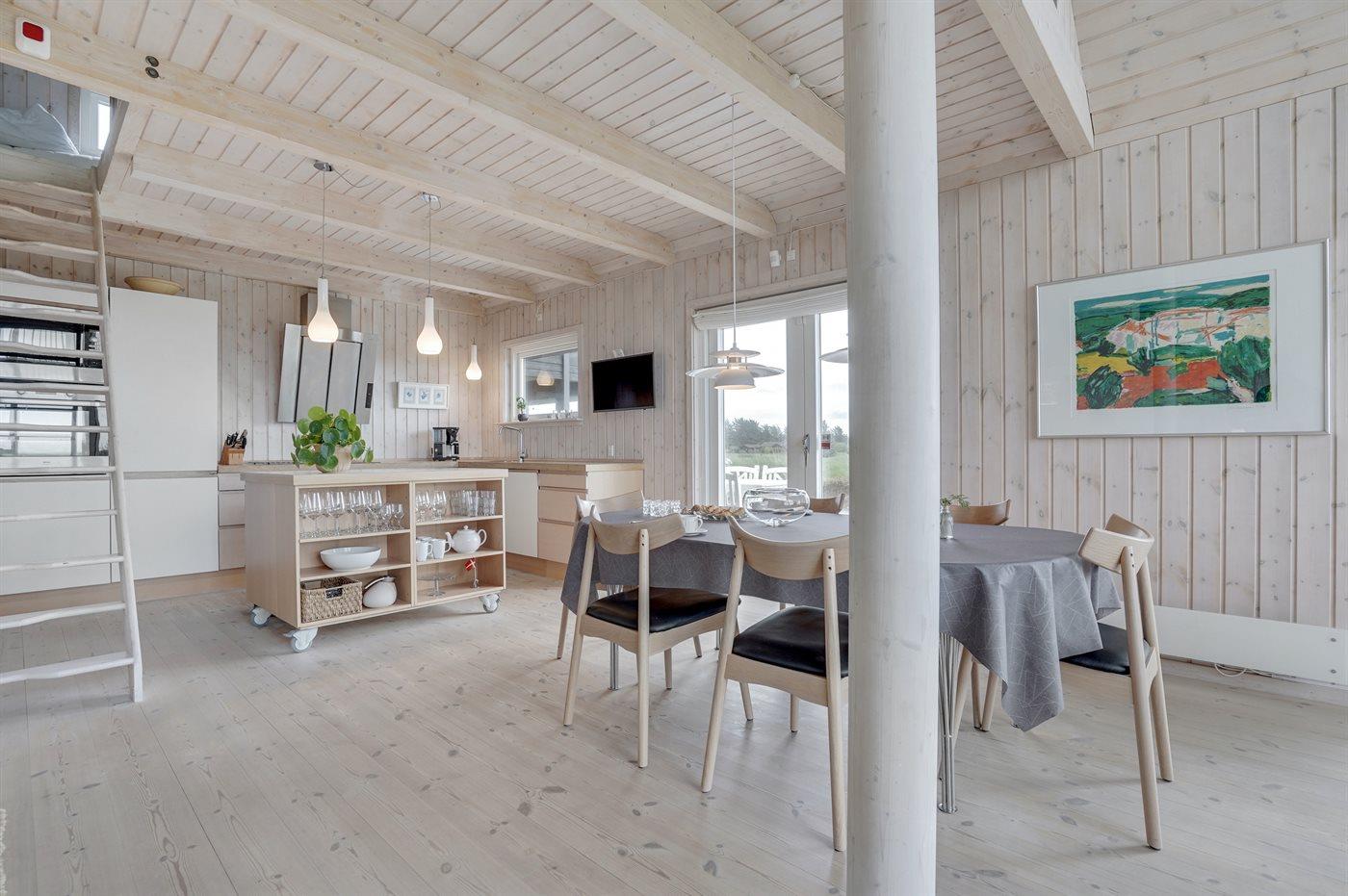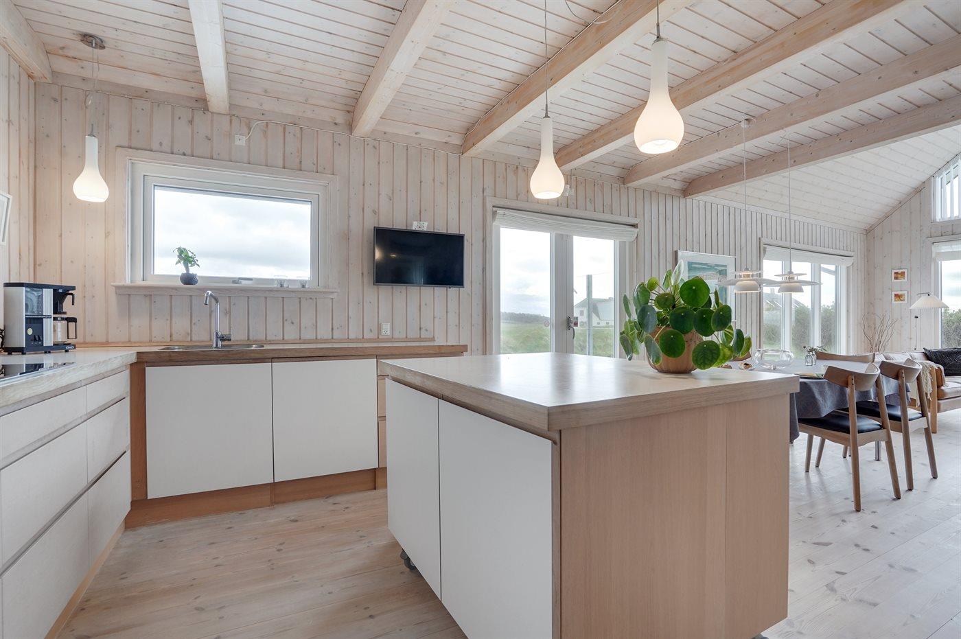 Køkkenet er udstyret med 1 køleskab. Der er 4 induktionskogeplader, varmluftovn, mikrobølgeovn samt opvaskemaskine.