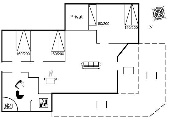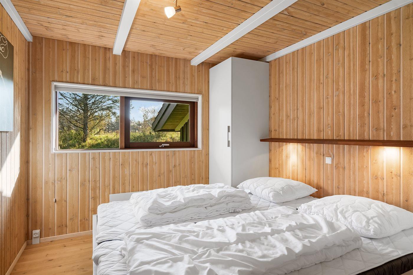 Der er i alt 3 soveværelser. Sovepladserne fordeler sig på: 6 sovepladser i dobbeltsenge. 1 soveplads i enkeltseng. Derudover er der 1 stk. barneseng.