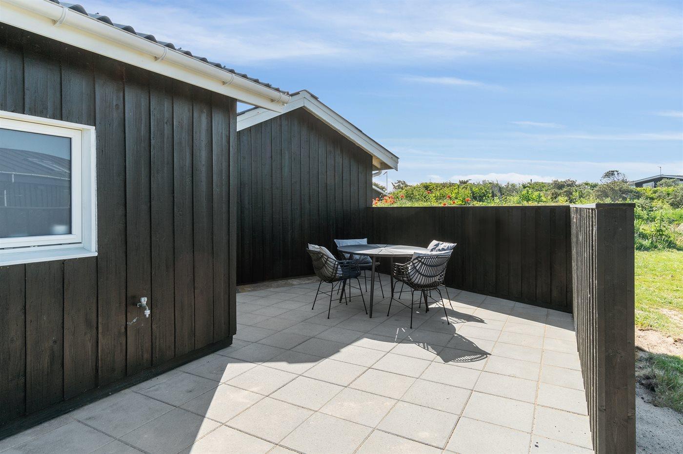 Ferieboligen er beliggende på en 700 m² stor naturgrund. Der er 279 m til havet. Nærmeste forretning er beliggende i en afstand af 1100 m. Til ferieboligen hører åbent terrasseareal. Udendørs bruser. Grill til rådighed. Der er installeret stik til opladning af elbil. Parkering ved ferieboligen.