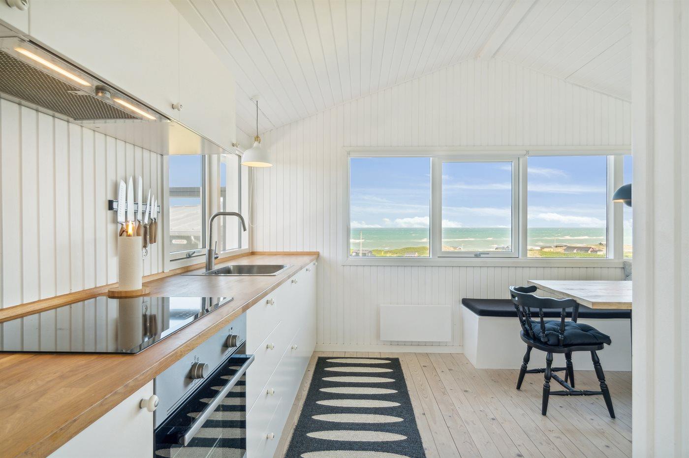 Køkkenet er udstyret med 1 køleskab. Der er 4 induktionskogeplader, varmluftovn, mikrobølgeovn samt opvaskemaskine.
