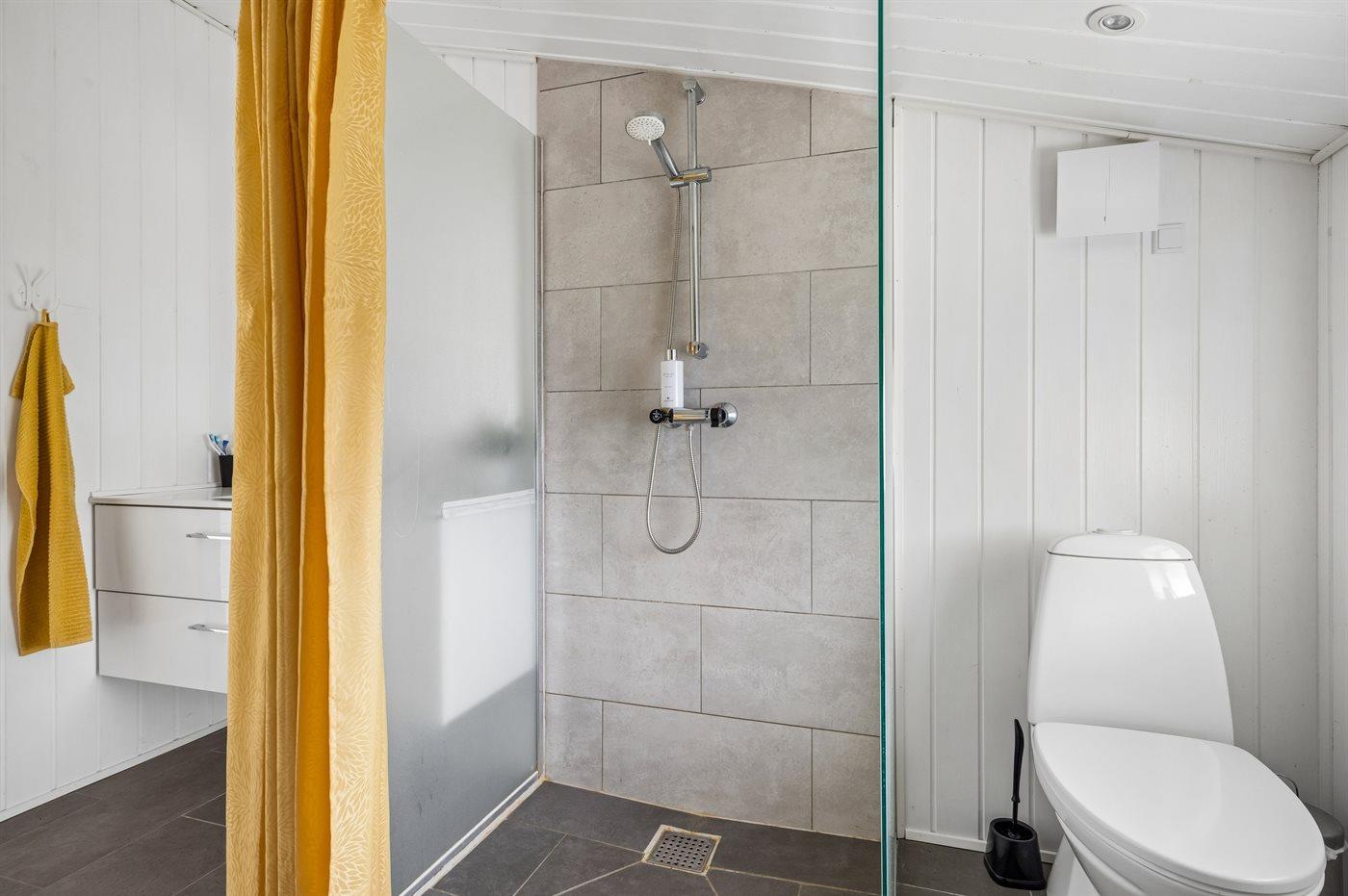 Der er 1 badeværelse med bruseniche og 1 toilet.. Der er gulvvarme på 1 badeværelse.
