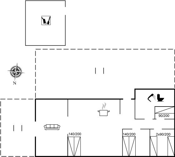 Der er i alt 2 soveværelser. Sovepladserne fordeler sig på: 4 sovepladser i dobbeltsenge. 2 sovepladser i sovesofa (dobbelt). 2 af disse sovepladser befinder sig i stuen.