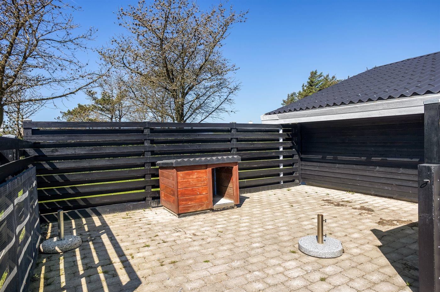 Der er en lukket hundegård på grunden.