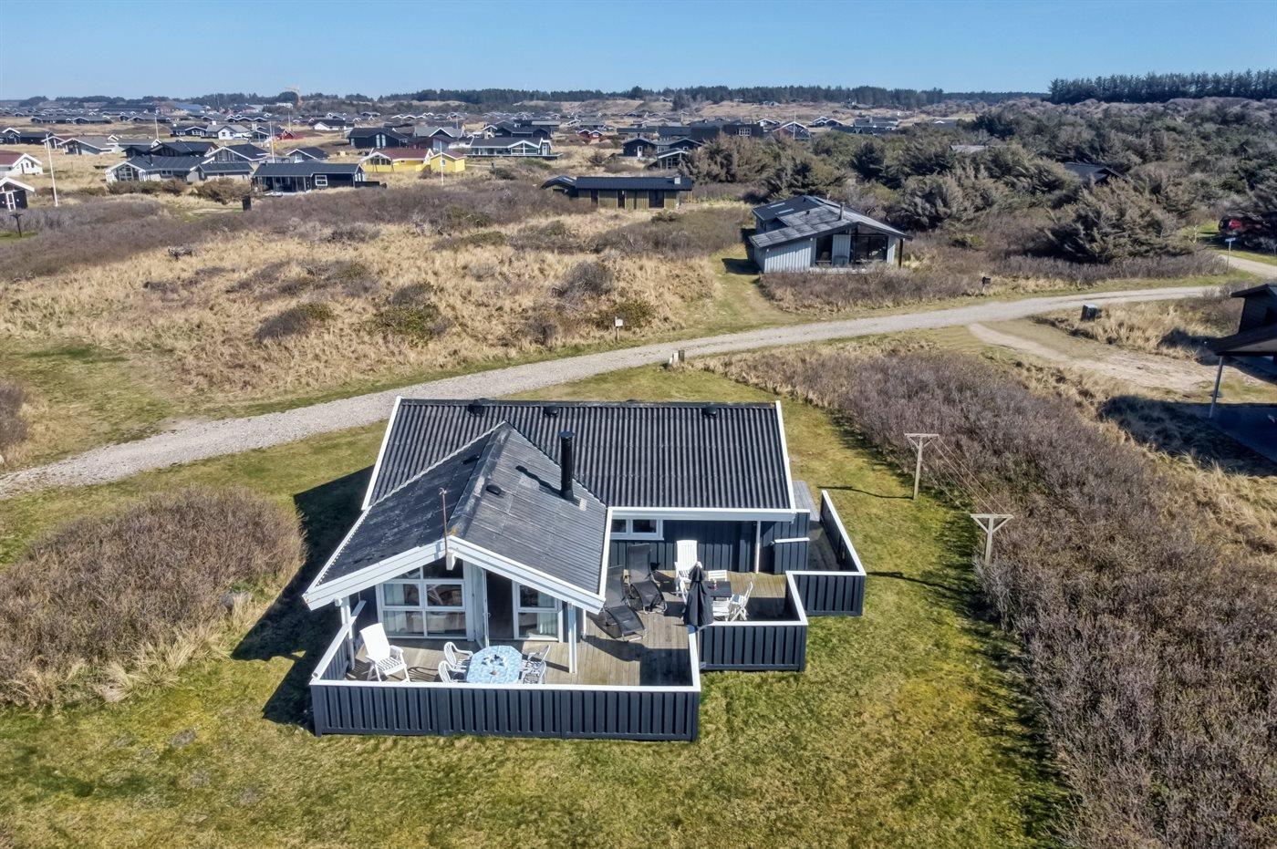 Ferieboligen er beliggende på en 1889 m² stor naturgrund. Der er 58 m til havet. Nærmeste forretning er beliggende i en afstand af 800 m. Der er en golfbane i en afstand af 6400 m. Til ferieboligen hører åbent terrasseareal. Desuden er der overdækket terrasse. Der ligger en legeplads i en afstand af 1200 m. Der er installeret stik til opladning af elbil. CEE stik. Med 11 kW ladeeffekt. Parkering ved ferieboligen.
