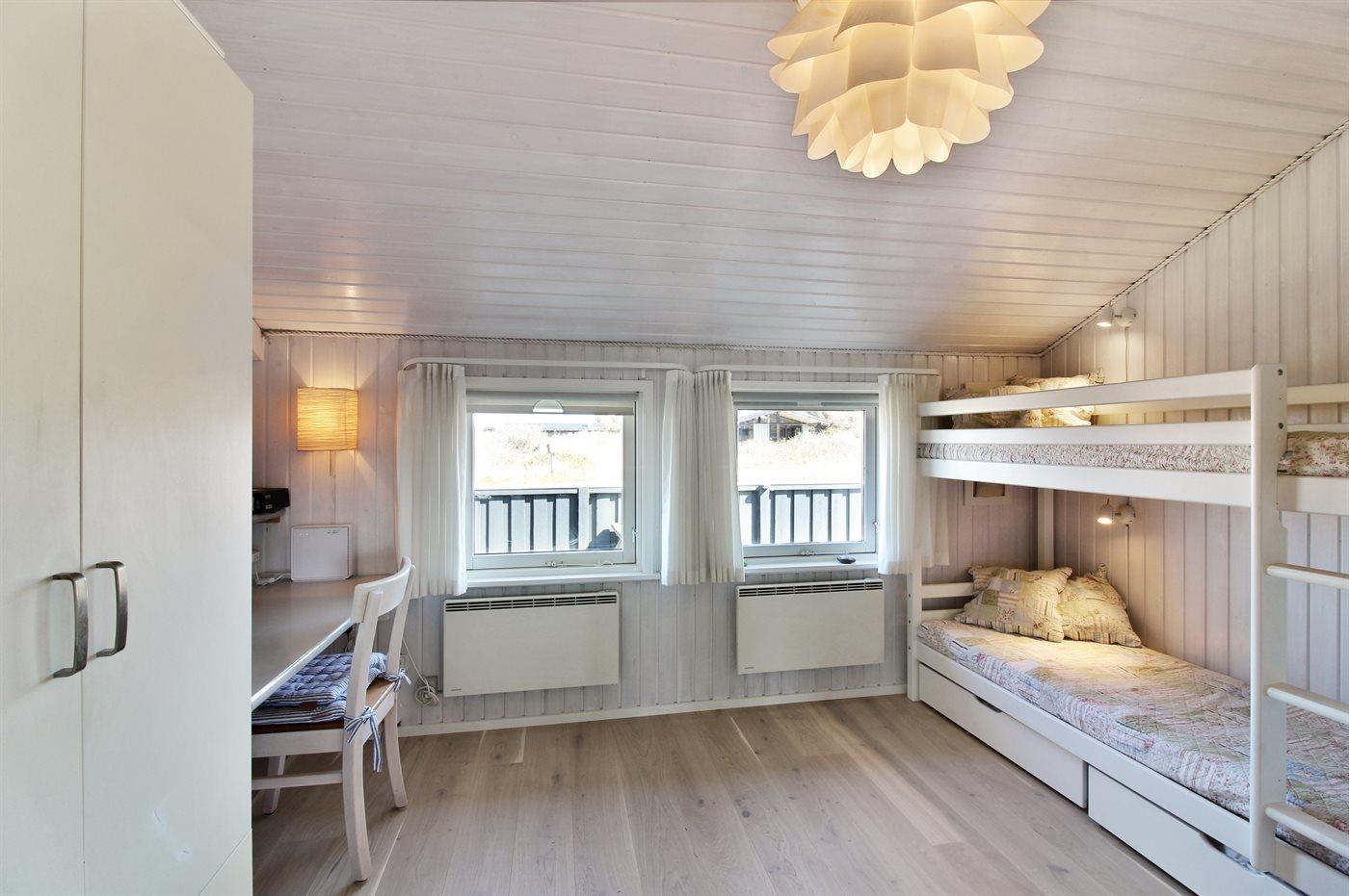Der er i alt 2 soveværelser. Sovepladserne fordeler sig på: 2 sovepladser i dobbeltseng. 2 sovepladser i køjeseng.