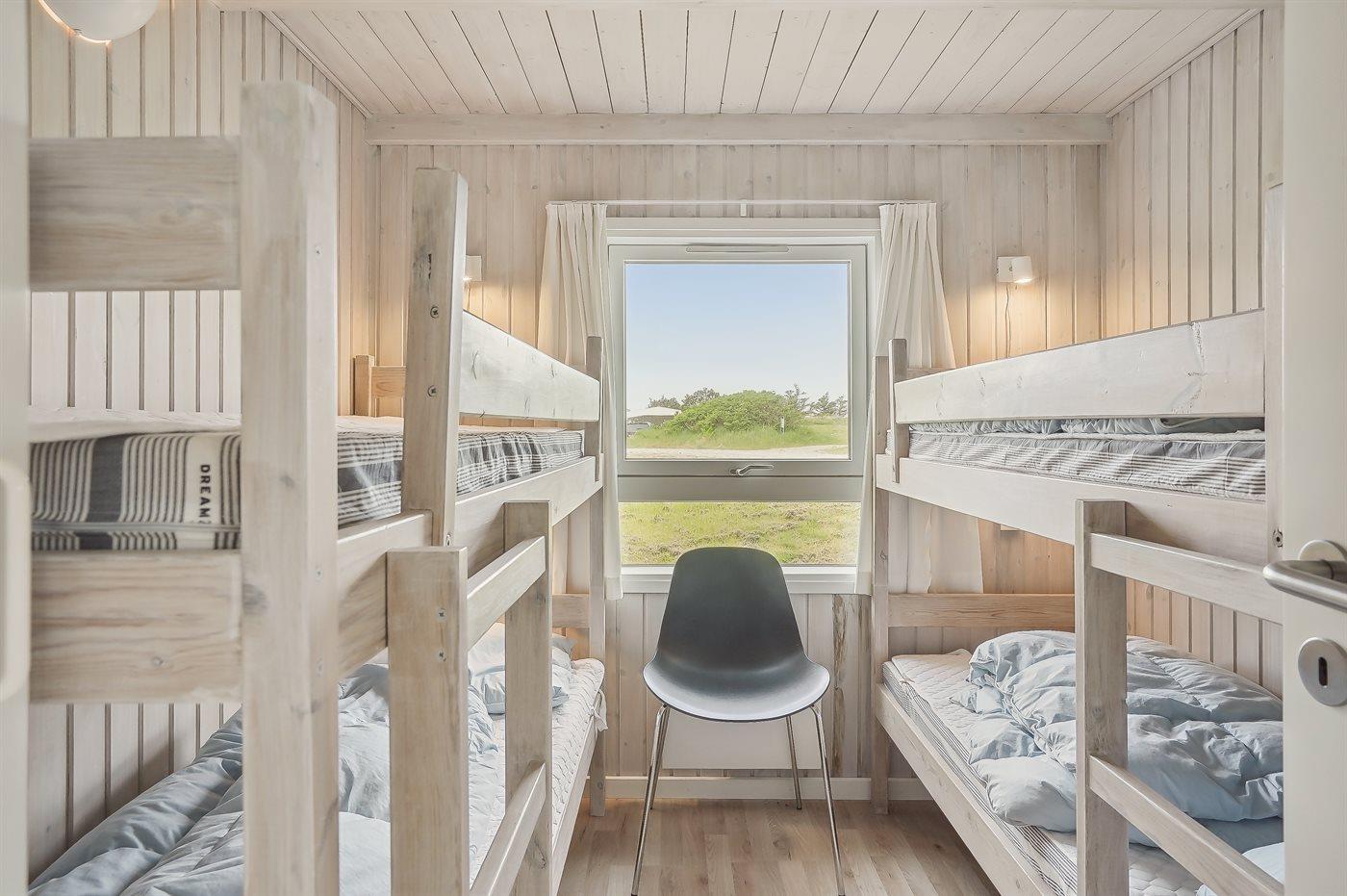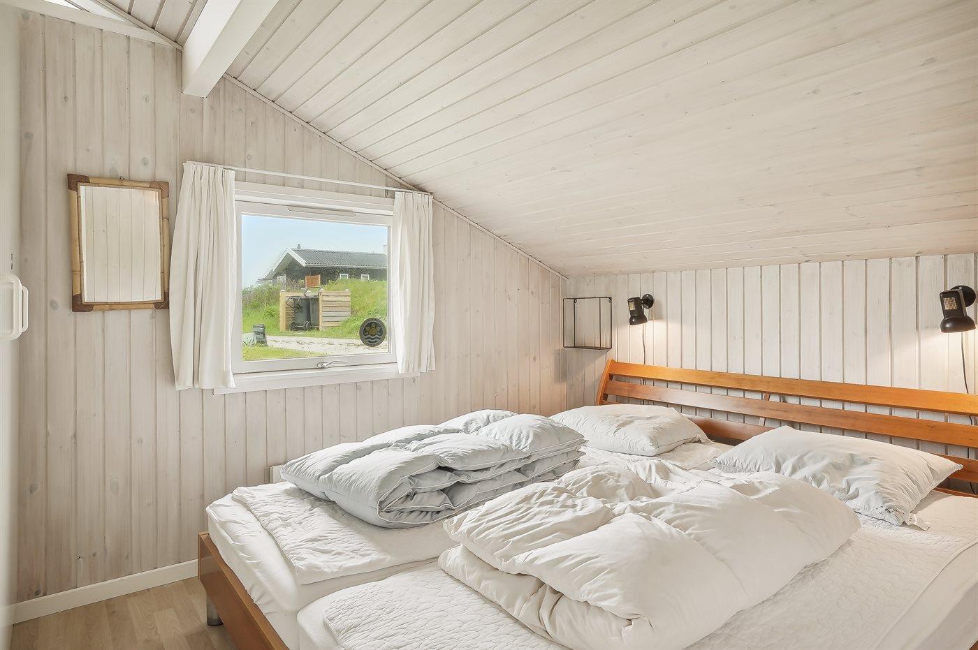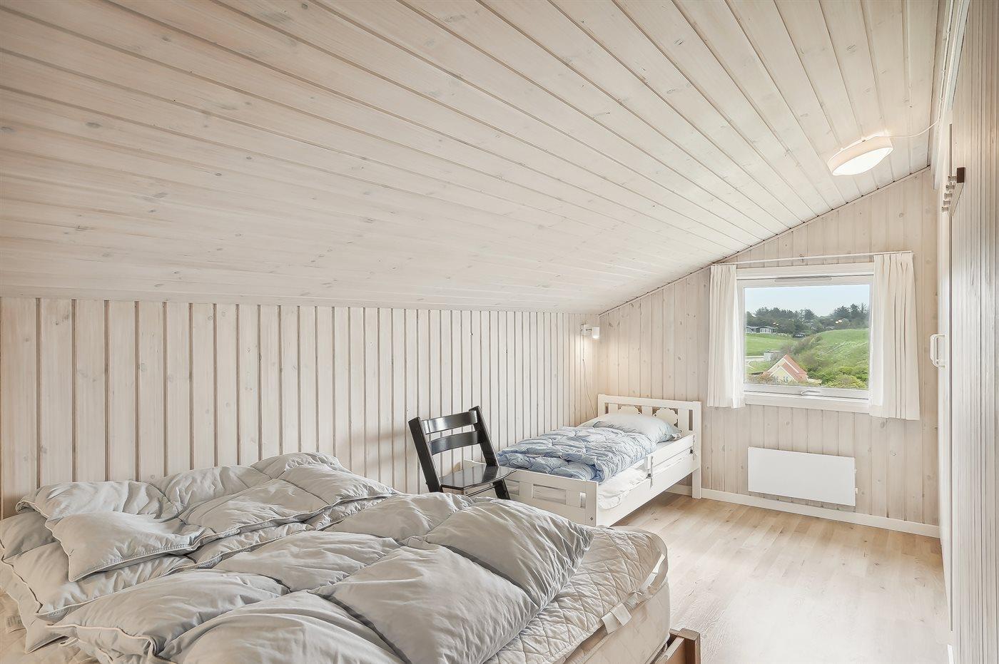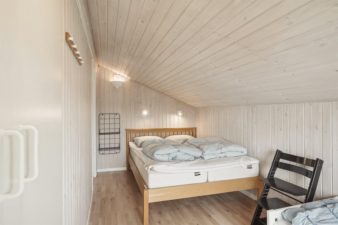Der er i alt 3 soveværelser. Sovepladserne fordeler sig på: 4 sovepladser i dobbeltsenge. 4 sovepladser i køjesenge. 2 sovepladser på madrasser. 2 af disse sovepladser befinder sig på husets hems. Derudover er der 1 stk. barneseng.