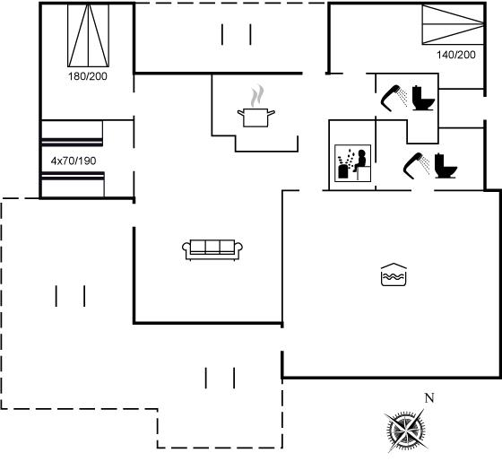 Sommerhuset egner sig til 6 personer samt 1 barn op til 3 år. 4 af sovepladserne er kun egnet til større børn (4-11 år). Ferieboligen er på 129 m² og er bygget i 1989. Det er tilladt at medbringe 1 husdyr. Ferieboligen er udstyret med 1 energivenlig luft til luft varmepumpe og 1 energivenlig luft til vand varmepumpe. Ferieboligen har vaskemaskine. Frysekapacitet på 20 liter. Der er desuden brændeovn. Til de små er der 1 stk. barnestol.