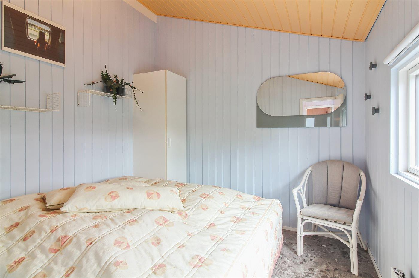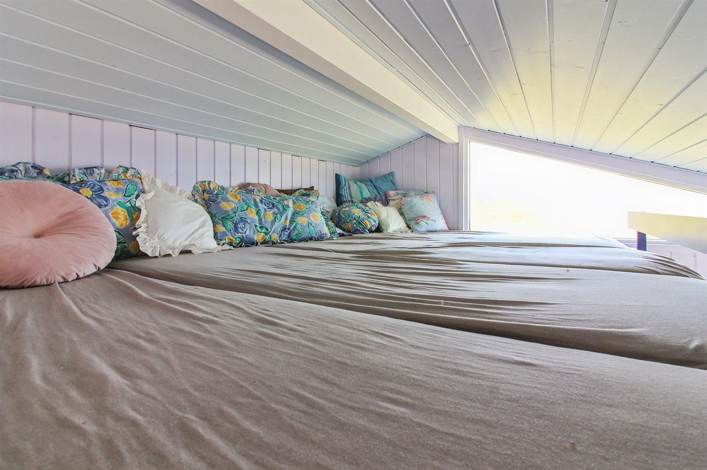 Der er i alt 3 soveværelser. Sovepladserne fordeler sig på: 4 sovepladser i dobbeltsenge. 2 sovepladser i køjeseng. 7 sovepladser på madrasser. 7 af disse sovepladser befinder sig på husets hems.