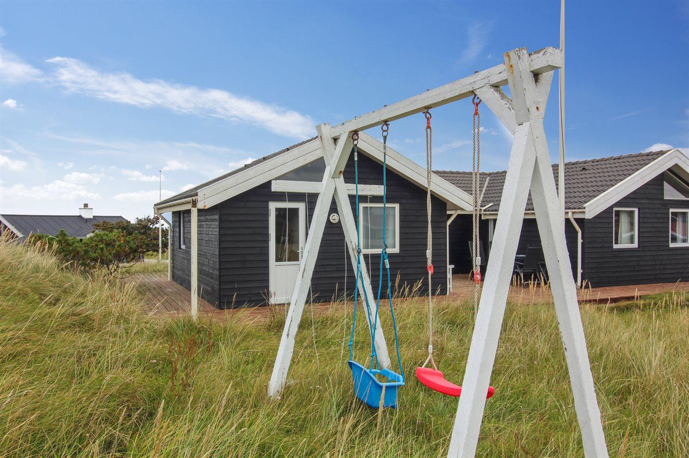 Ferieboligen er beliggende på en 1200 m² stor naturgrund. Der er 100 m til havet. Nærmeste forretning er beliggende i en afstand af 1000 m. Til ferieboligen hører åbent terrasseareal. Desuden er der overdækket terrasse. Der er redskabsrum. Gynge. Sandkasse. Grill til rådighed. Parkering ved ferieboligen.