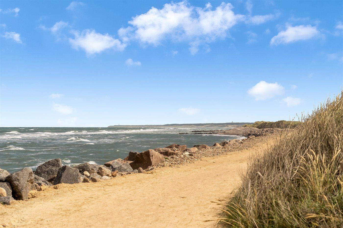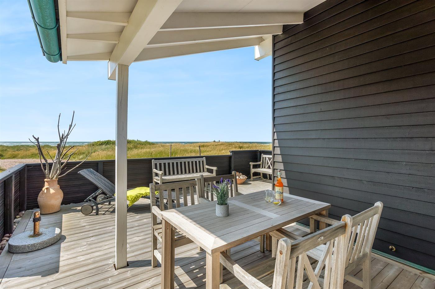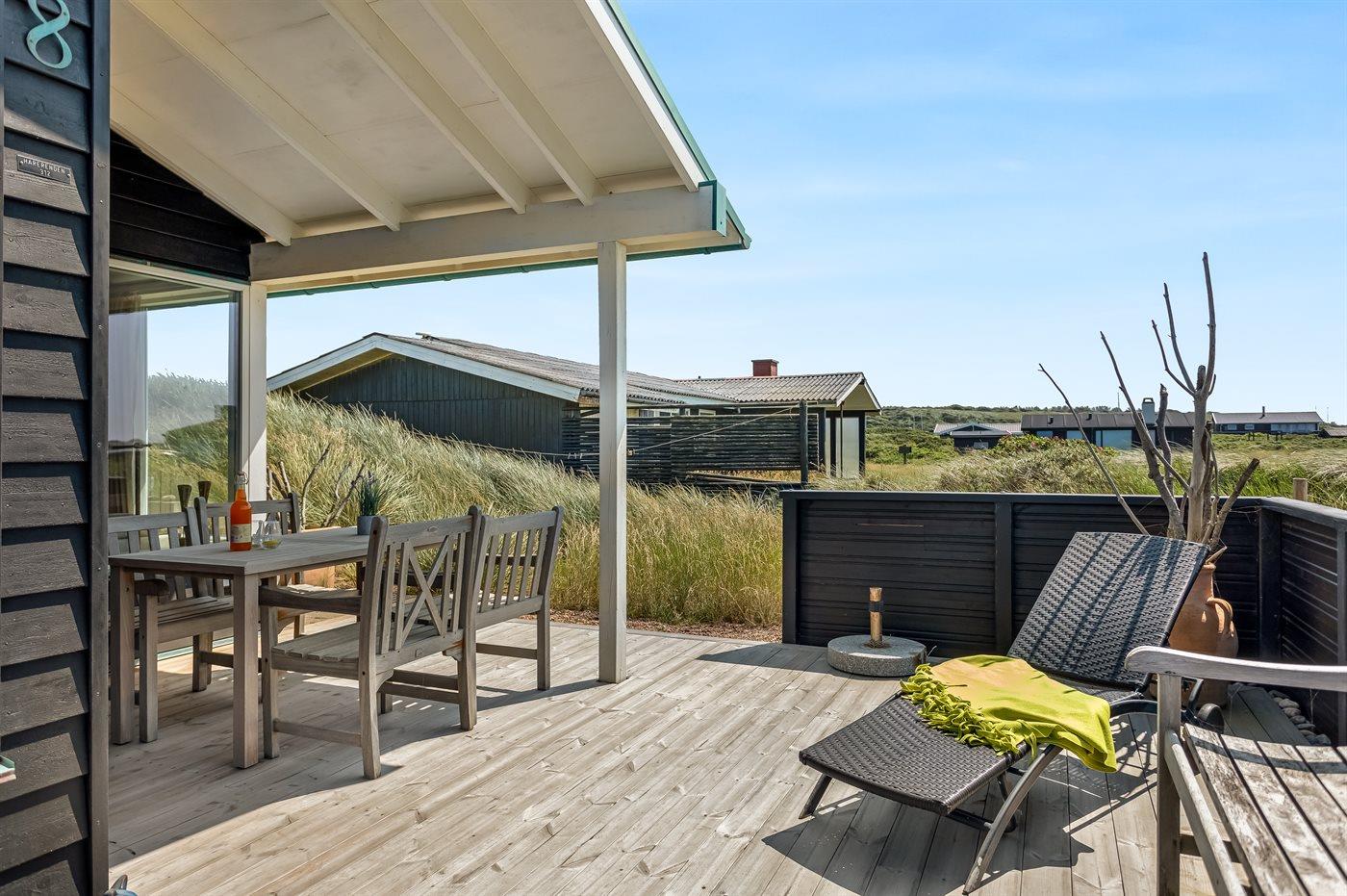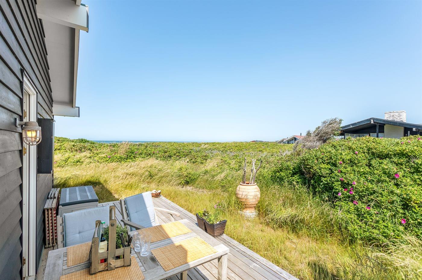 Ferieboligen er beliggende på en 2000 m² stor klitgrund. Der er 50 m til havet. Nærmeste forretning er beliggende i en afstand af 600 m. Til ferieboligen hører 33 m² terrasseareal. Desuden er der 9 m² overdækket terrasse. Grill til rådighed. Parkering ved ferieboligen.