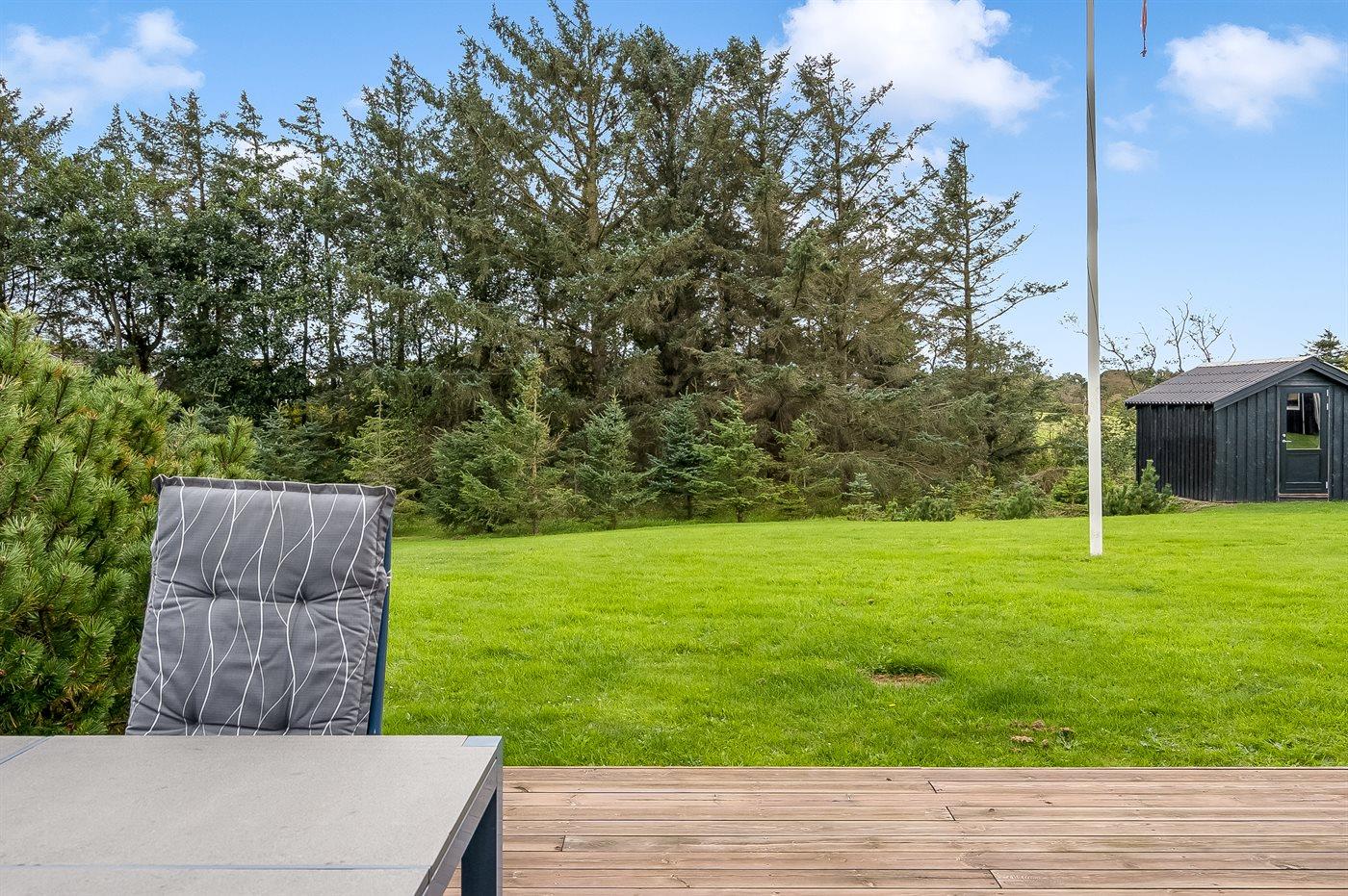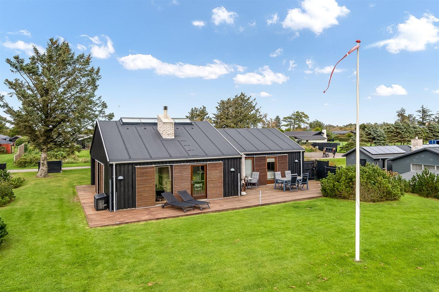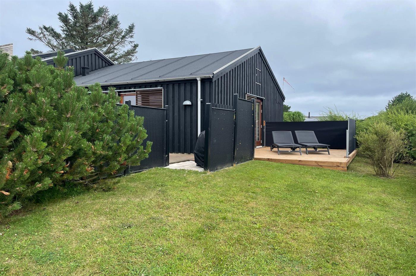 Ferieboligen er beliggende på en 1200 m² stor havegrund. Der er 758 m til havet. Nærmeste forretning er beliggende i en afstand af 300 m. Der er en golfbane i en afstand af 3000 m. Til ferieboligen hører åbent terrasseareal. Desuden er der overdækket terrasse. Der er redskabsrum. Der ligger en legeplads i en afstand af 300 m. Grill til rådighed. Der er installeret stik til opladning af elbil. Type 2 stik. Med 11 kW ladeeffekt. Parkering ved ferieboligen.
