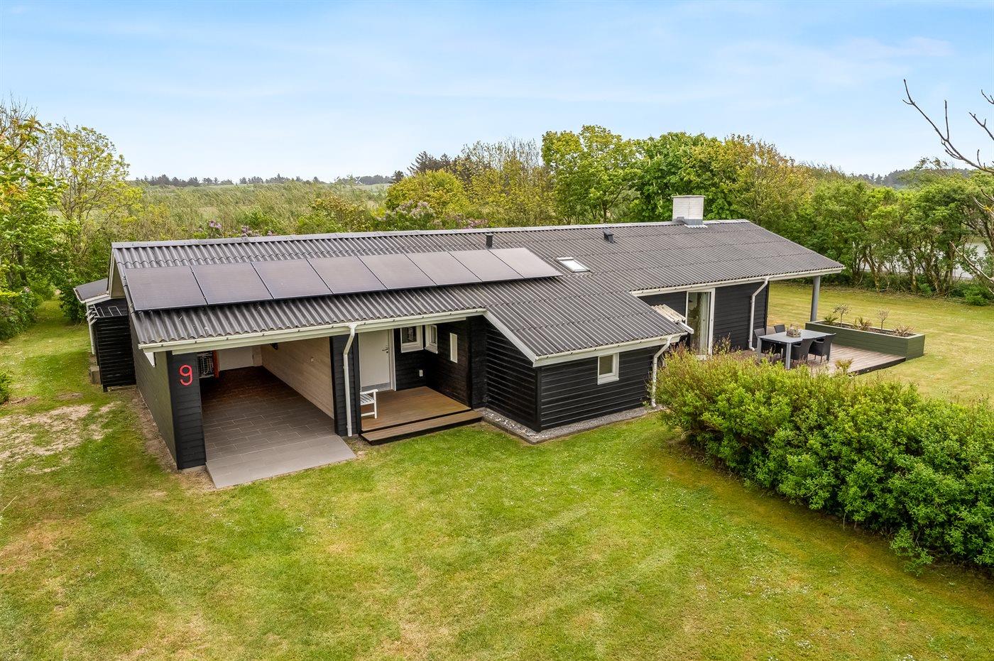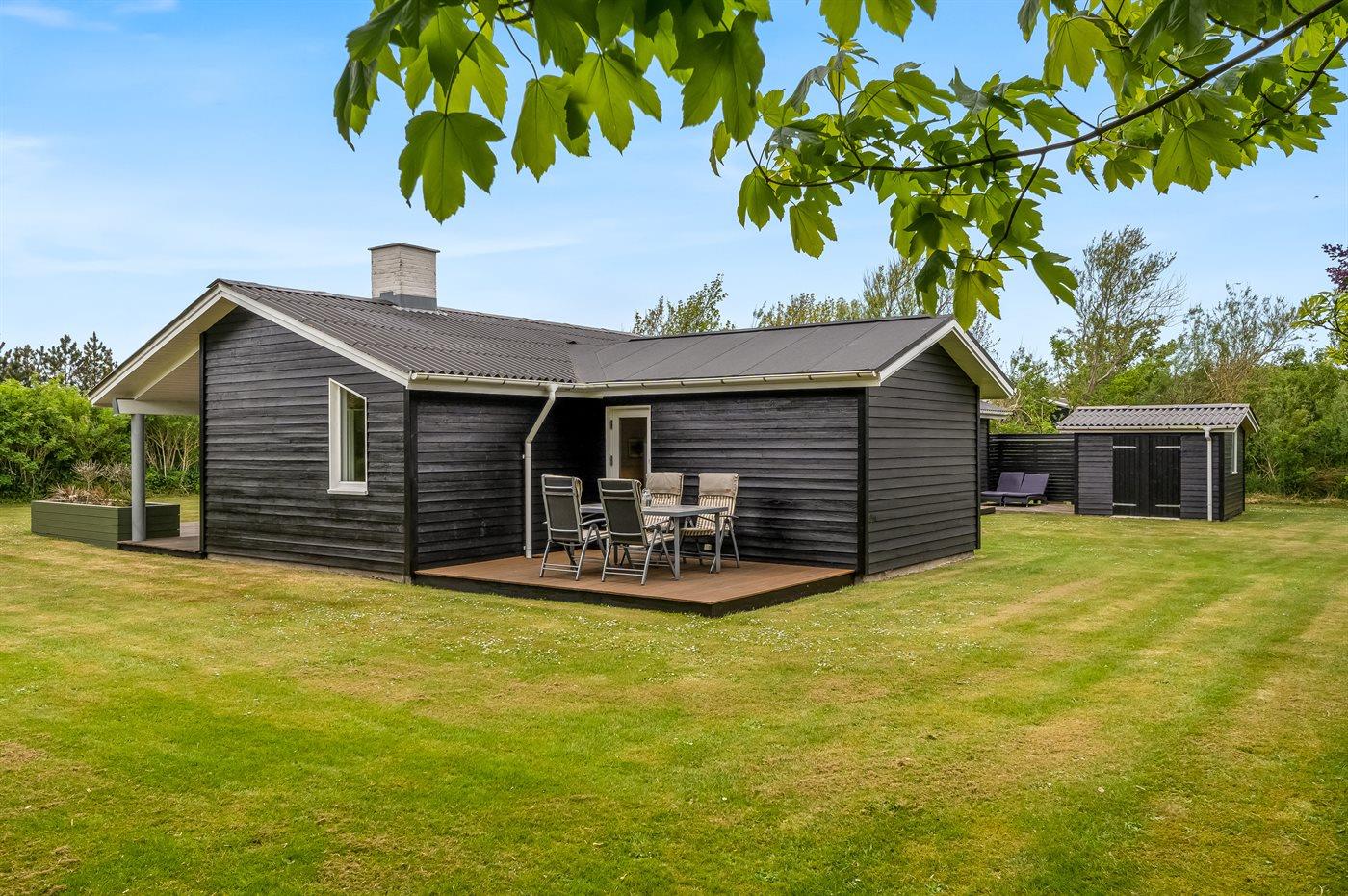 Ferieboligen er beliggende på en 1400 m² stor naturgrund. Der er 1200 m til havet. Nærmeste forretning er beliggende i en afstand af 775 m. Til ferieboligen hører åbent terrasseareal. Desuden er der overdækket terrasse. Grill til rådighed. Der er garage til rådighed. Der er installeret stik til opladning af elbil. Parkering ved ferieboligen.