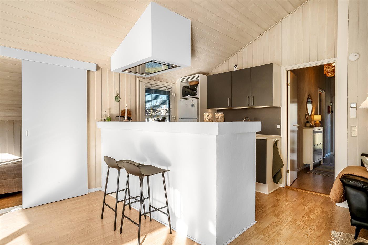 Køkkenet er udstyret med 1 køleskab. Der er 4 induktionskogeplader, varmluftovn, mikrobølgeovn samt opvaskemaskine.