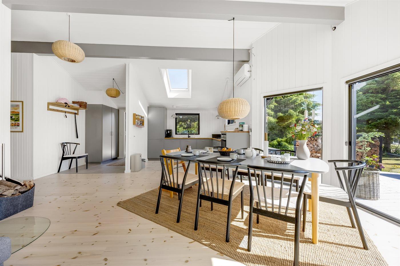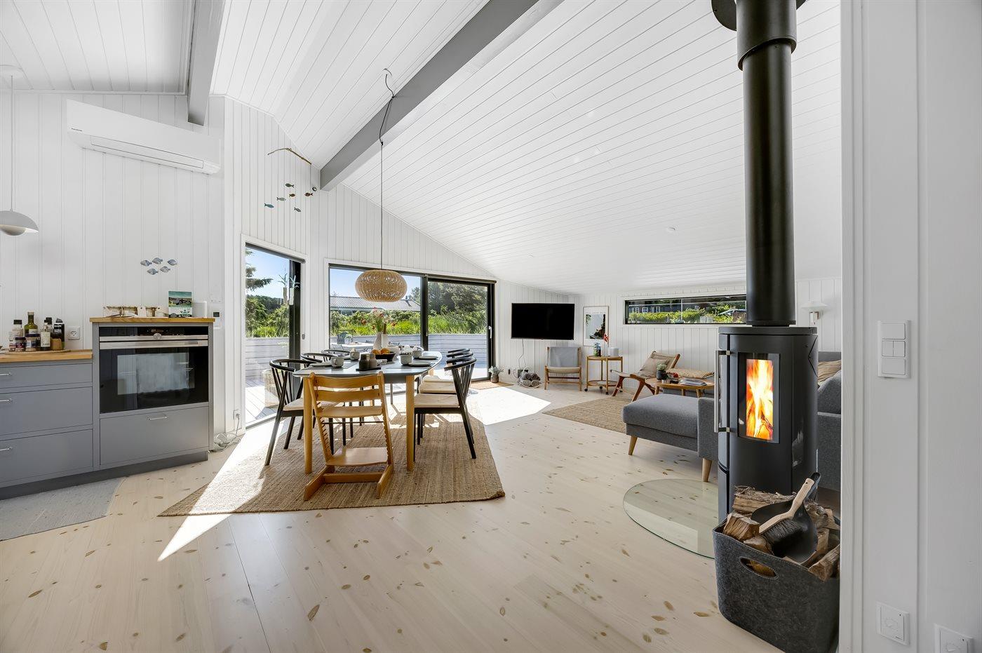 Sommerhuset er velegnet til både familier og vennepar og rummer op til 6 personer samt 1 barn under 3 år. Huset er 95 m² og blev renoveret i 2021. Indretningen er lys og moderne, og komforten er i top med energivenlig varmepumpe, gulvvarme i store dele af huset, brændeovn, vaskemaskine, tørretumbler og sauna til afslapning.