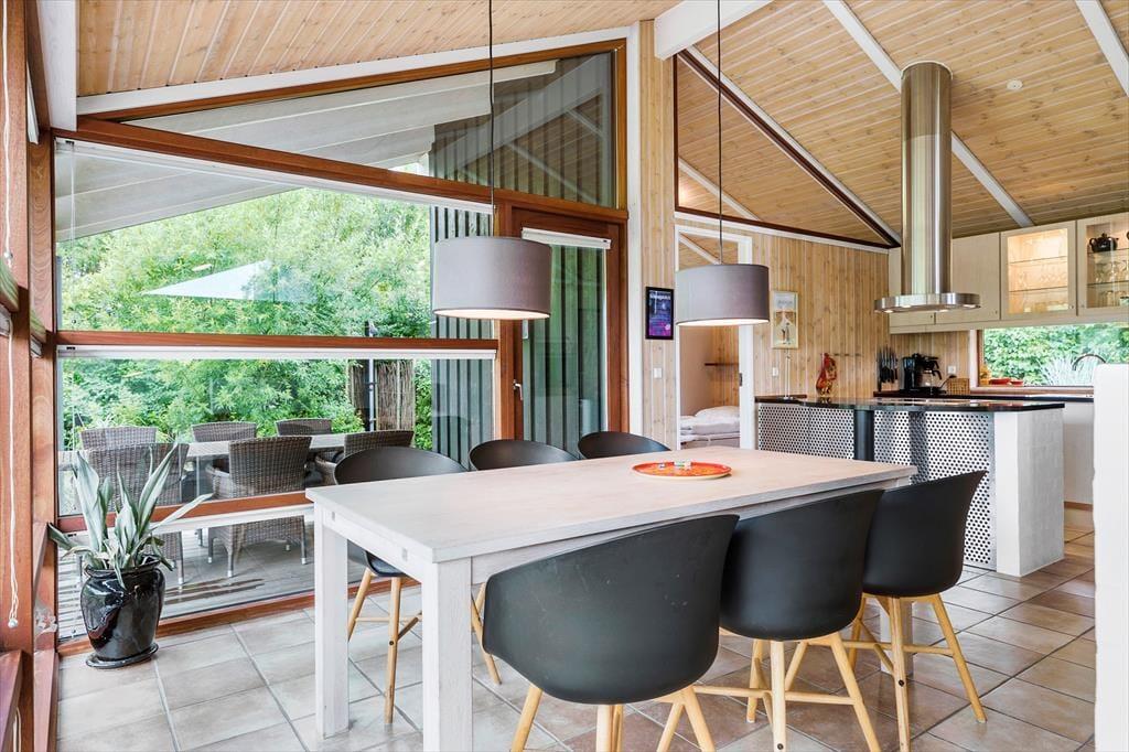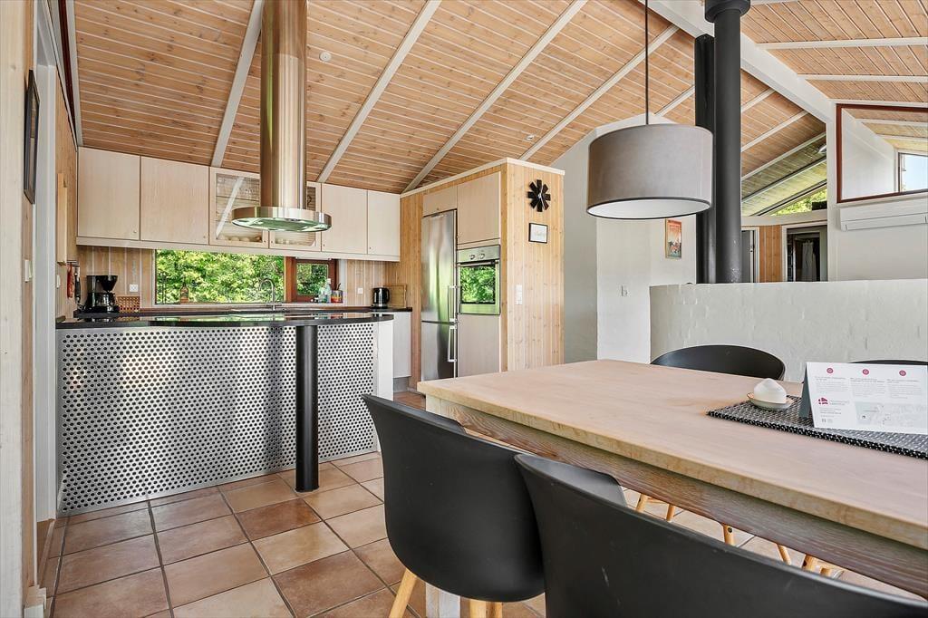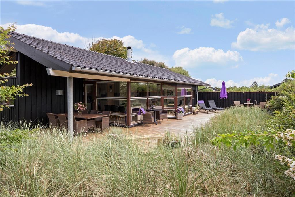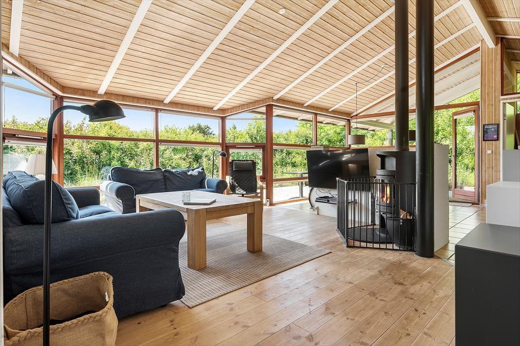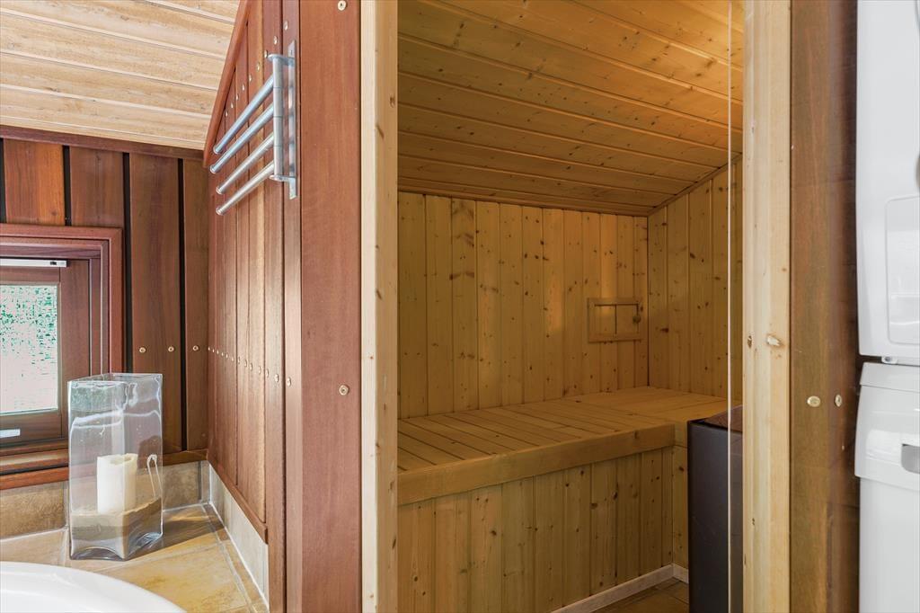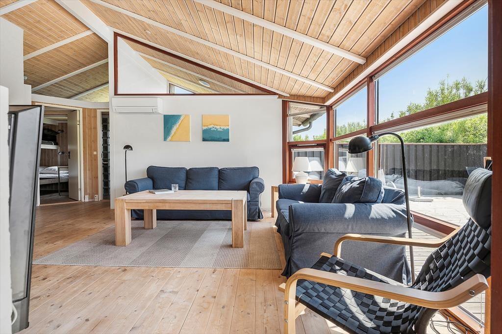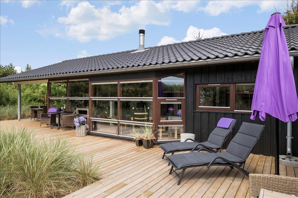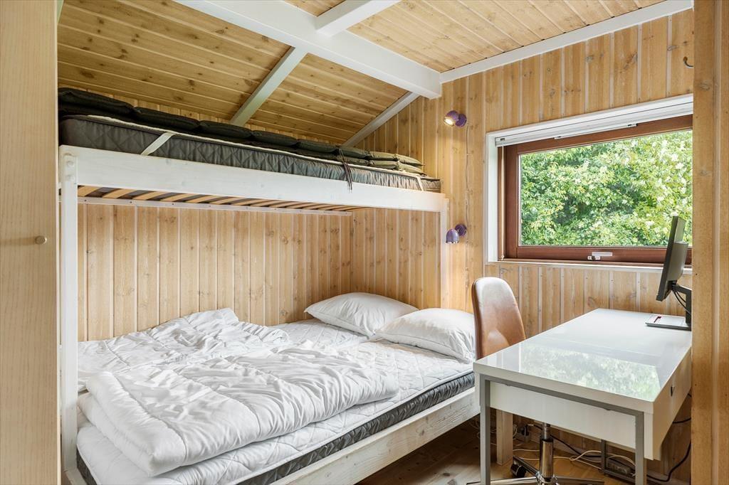 Dette liebhaverhus er meget flot og luksuriøst indrettet, og der er tænkt på mange flotte detaljer. Sommerhuset udlejes til 6 personer. Et soverum har en dobbeltseng. Soveværelse 2 har ligeledes en dobbeltseng. Det 3. og sidste soverum har en dobbeltseng med en køje over. En fin hems med to madrasser er også en mulighed for god søvn, hvis der er store børn med på ferien. Meget lækkert badeværelse med bruser, gulvvarme, spabad til 2 personer og sauna. Ekstra badeværelse ligeledes med bruser og gulvvarme. I dette sommerhus kan du forkæle dig selv med lækker wellness. Det flotte opholdsrum ligger i åben forbindelse med det veludstyrede køkken. Her har du lækre kvalitetsmøbler, brændeovn, SMART TV og naturligvis gratis, trådløst Wi-fi internet.
