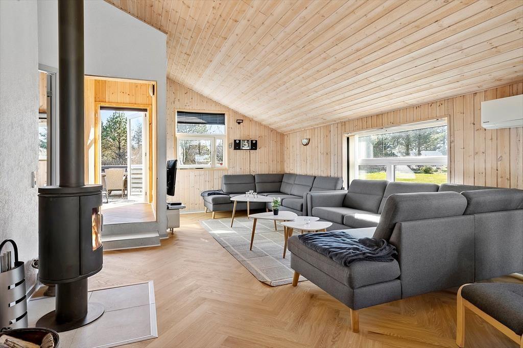 Træd ind i en varm og indbydende atmosfære, hvor hverdagen hurtigt føles langt væk. Huset er indrettet med komfort og feriehygge for øje – blandt andet med en dejlig brændeovn, der spreder varme og knitrende stemning på kølige aftener. Stue og køkken ligger i åben forbindelse og giver plads til fælles madlavning og samvær, mens nogle dykker ned i et brætspil eller blot nyder synet af flammerne i ovnen. To badeværelser gør det nemt for flere familier at feriere sammen, og når dagen lakker mod enden, kan du vælge mellem flere gode sovepladser – også i det hyggelige anneks, som giver lidt ekstra privatliv. Når du virkelig skal forkæle dig selv, venter der både spabad og sauna indenfor – perfekt til at koble helt af og mærke ferieroen sænke sig efter en lang gåtur i den friske havluft.