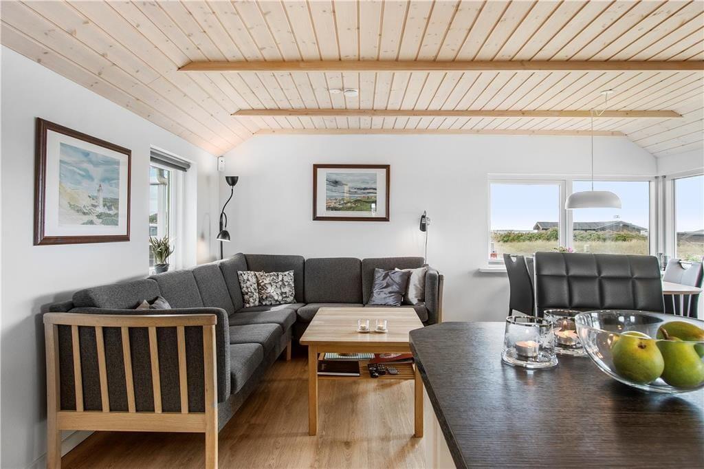 Dette hyggelige sommerhus ligger skønt placeret i Harerenden ved Lønstrup med udsigt til indlandsklitterne og Vesterhavet.
