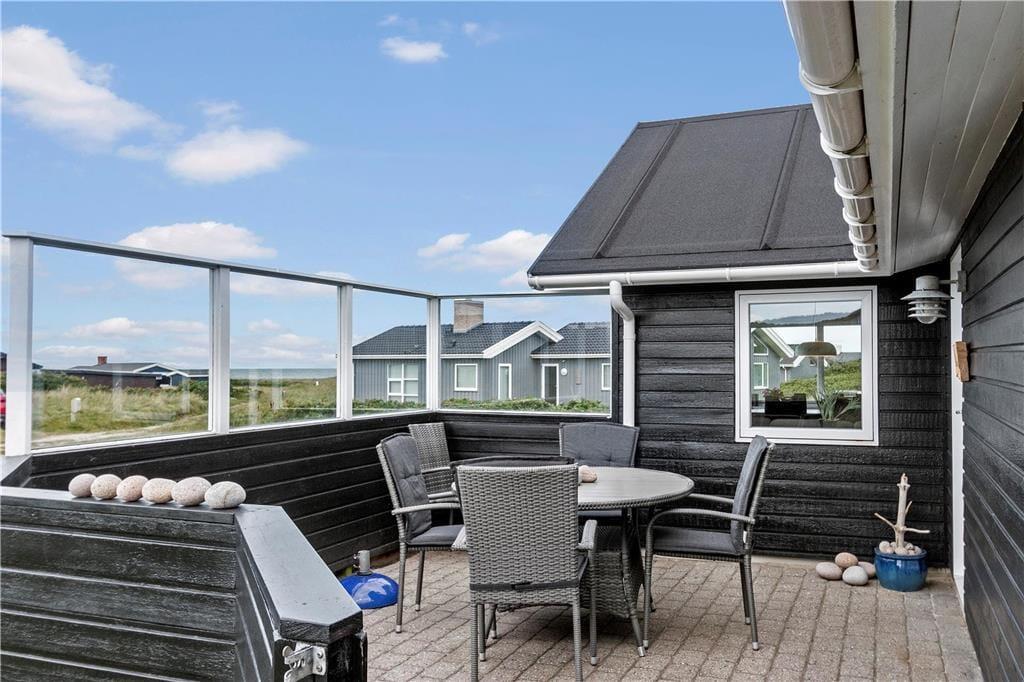 Skinner solen lige fra morgenstunden, kan I begynde dagen i det fri på den østvendte terrasse, hvor I kan sidde helt ugeneret, mens I nyder morgenkaffen. Senere kan I rykke over på den vestvendte terrasse, som har afskærmning, der giver læ uden at skygge for havudsigten. Begge terrasser er helt lukkede, og for at gøre udelivet komplet, er der havemøbler, parasol og kuglegrill til rådighed.