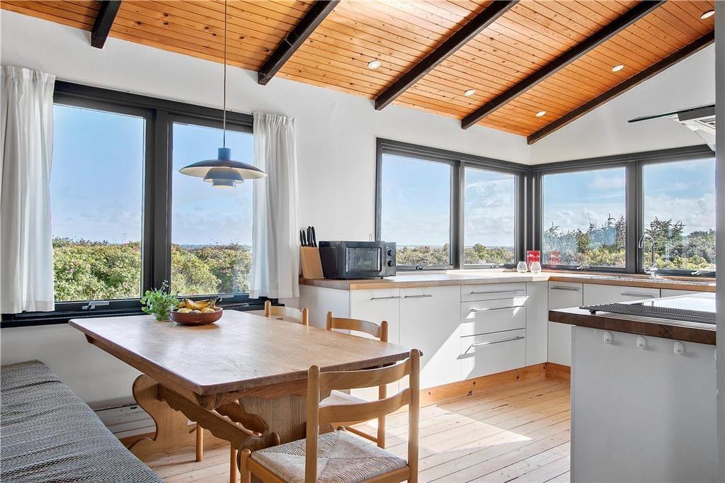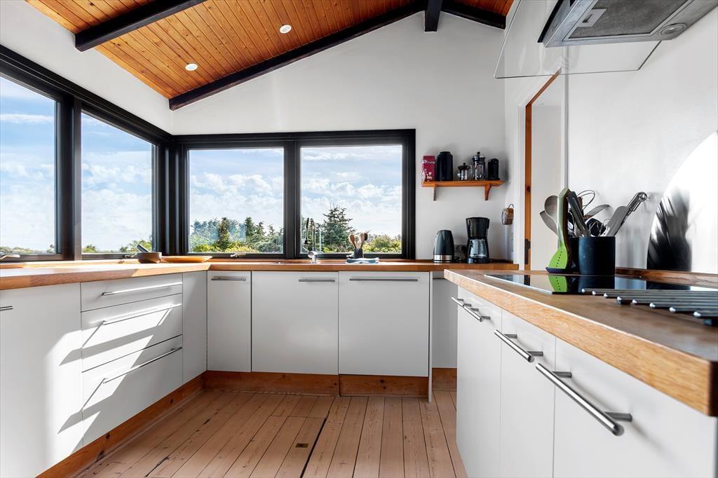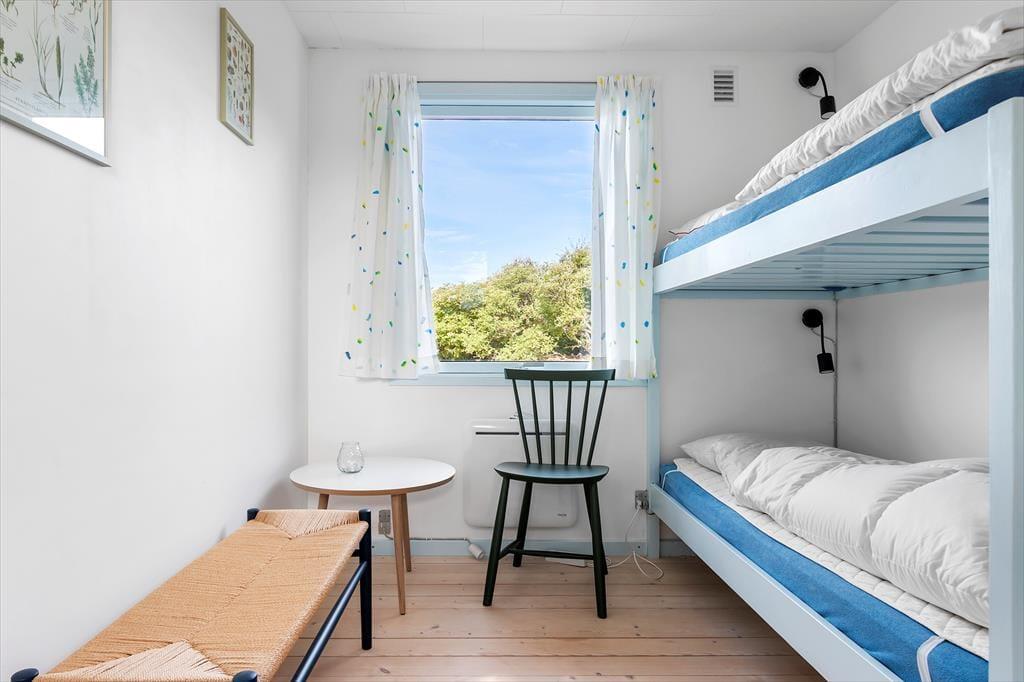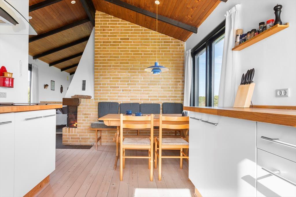Sommerhusets aktiv er det store flotte nyere køkken, hvorfra man kan nyde en helt fantastisk panoramaudsigt mens maden tilberedes. Også fra den hyggelige stue kan udsigten nydes. Sommerhuset har tre soveværelser, et med dobbeltseng og to værelser med køjer. Badeværelset er ældre og funktionelt. Til sommerhuset hører et anneks, som har et stort værelse med to enkeltsenge, samt et ældre badeværelse med koldt vand. Sommerhuset er hyggeligt og indbydende med en god atmosfære.