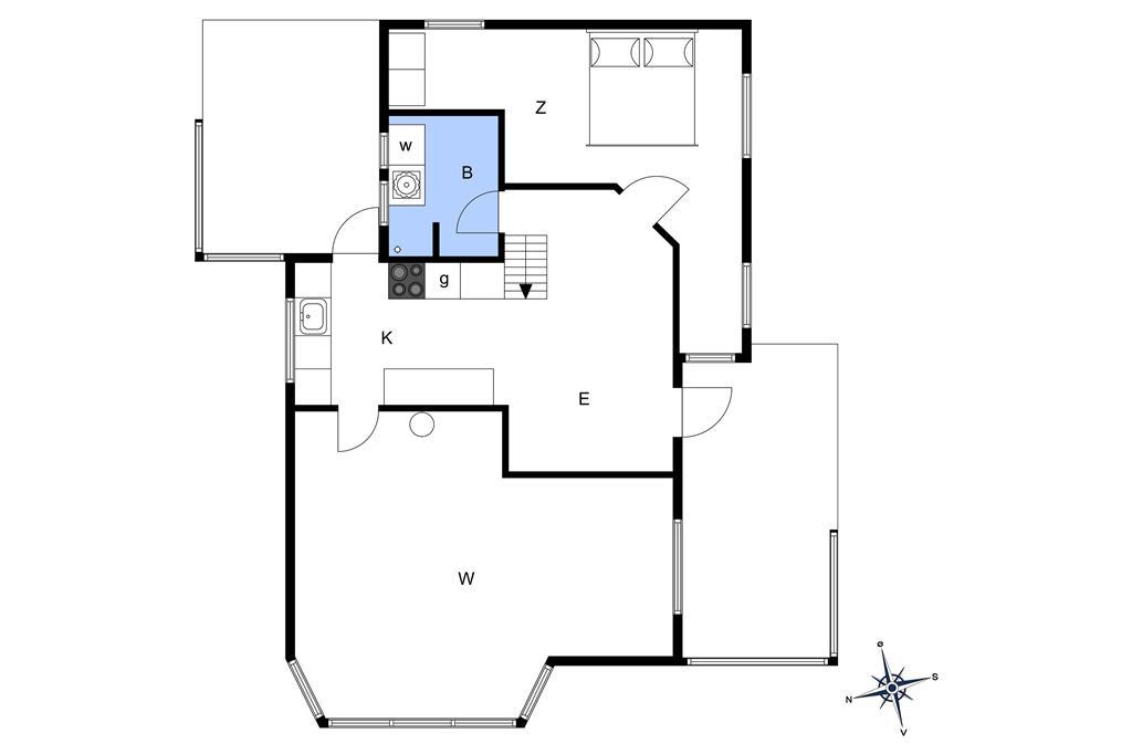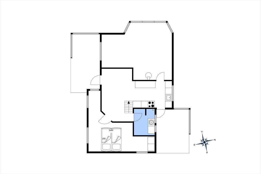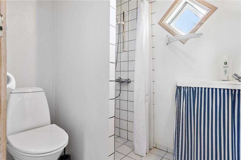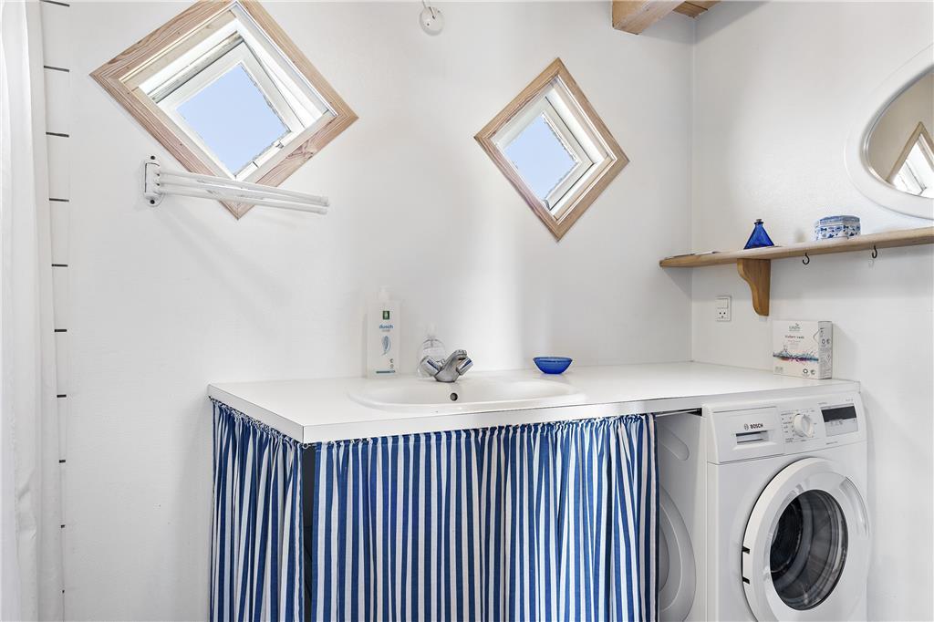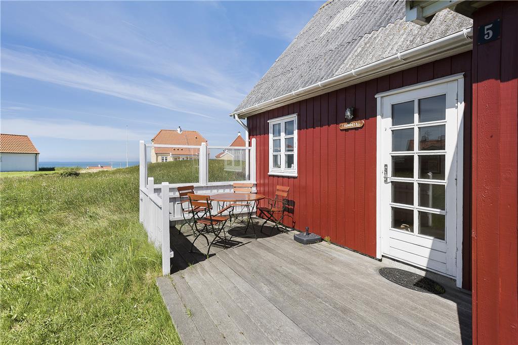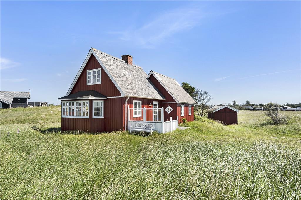 Sommerhuset er hyggeligt indrettet i to etager. I stueplan finder du køkkenet med udgang til den østvendte terrasse. Stuen er hyggelig indrettet med charmerende ældre og komfortable møbler. Overalt fra stuen har man den smukkeste udsigt over Vesterhavet og nogle af byens ældste og smukt renoverede sommerhuse. I stueplan findes et stort soveværelse samt husets badeværelse. På første salen finder du sommerhusets andet soveværelse med to enkeltsenge og også herfra kan man nyde den flotte havudsigt.