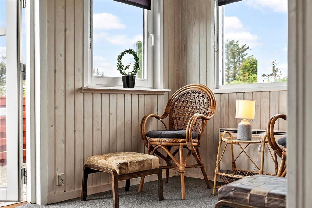 Fra sommerhuset har I direkte adgang til to terrasser: Den mindste ligger mod vest lige ved entréen, mens den anden ligger i naturlig forlængelse af stuen i sydøstlig retning. Der er med andre ord flere opholdspladser at vælge imellem alt efter solens placering på himlen og behovet for skygge. Rundt om huset og terrasserne breder en stor, grøn græsplæne sig, så der er masser af plads til leg og boldspil.