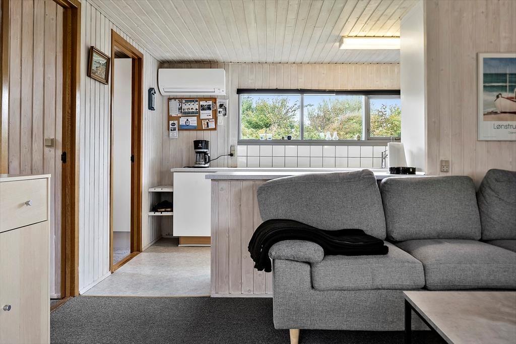 Det klassiske træsommerhus er oprindeligt opført i 1964 og er sidenhen blevet grundigt moderniseret. Blandt andet er husets køkkenafdeling indrettet på fin og funktionel vis, så det er et skønt sted at kokkerere, og takket være den åbne forbindelse til stuen kan I sågar tage del i feriehyggen, mens I forbereder aftensmaden. Stuen er hyggeligt indrettet, så det er et dejligt sted at samles til kortspil, TV-kigning og andre afslappende ferieaktiviteter, og vinduerne sørger for et godt lysindfald i løbet af dagen. Foruden opholdsafdelingen byder planløsningen på tre gode soveværelser og et lækkert badeværelse. Det ene soveværelse er udstyret med to enkeltsenge og de to andre med hver især en enkeltseng, så i alt er der sengepladser til fire personer i sommerhuset.