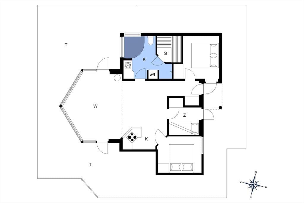 Sommerhuset er velindrettet med moderne og funktionelle møbler. Det veludstyrede køkken ligger i åben forbindelse med stuen, og også herfra kan havudsigten nydes mens maden tilberedes. Huset har 3 soveværelser, to med dobbeltsenge og et med en køjeseng. Der er store panoramavinduer som giver et fantastisk lysindfald i hele sommerhuset.
