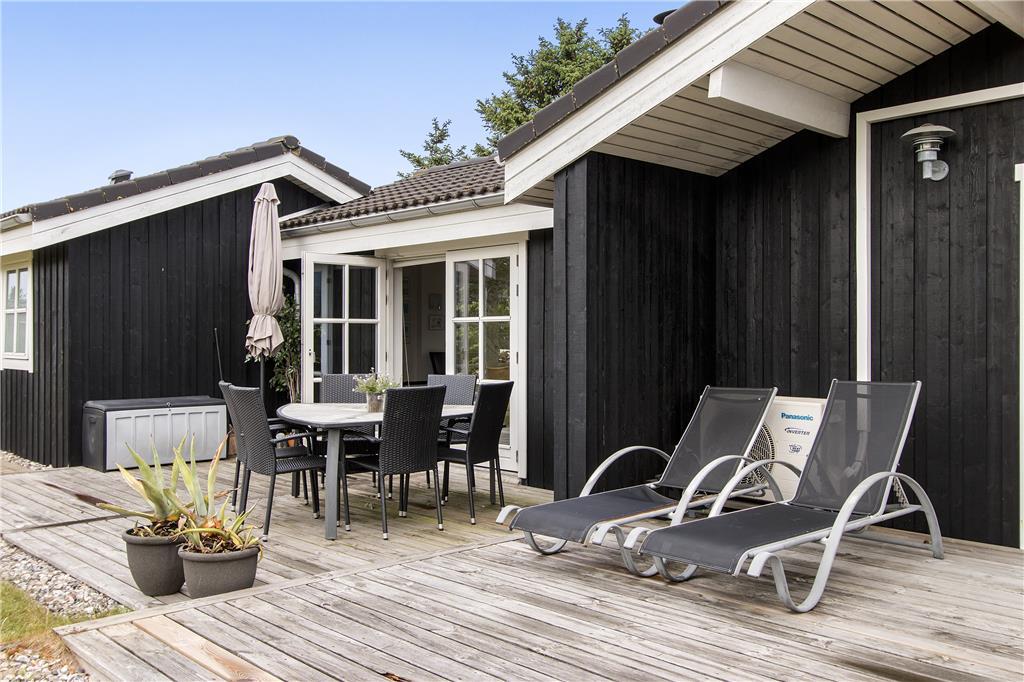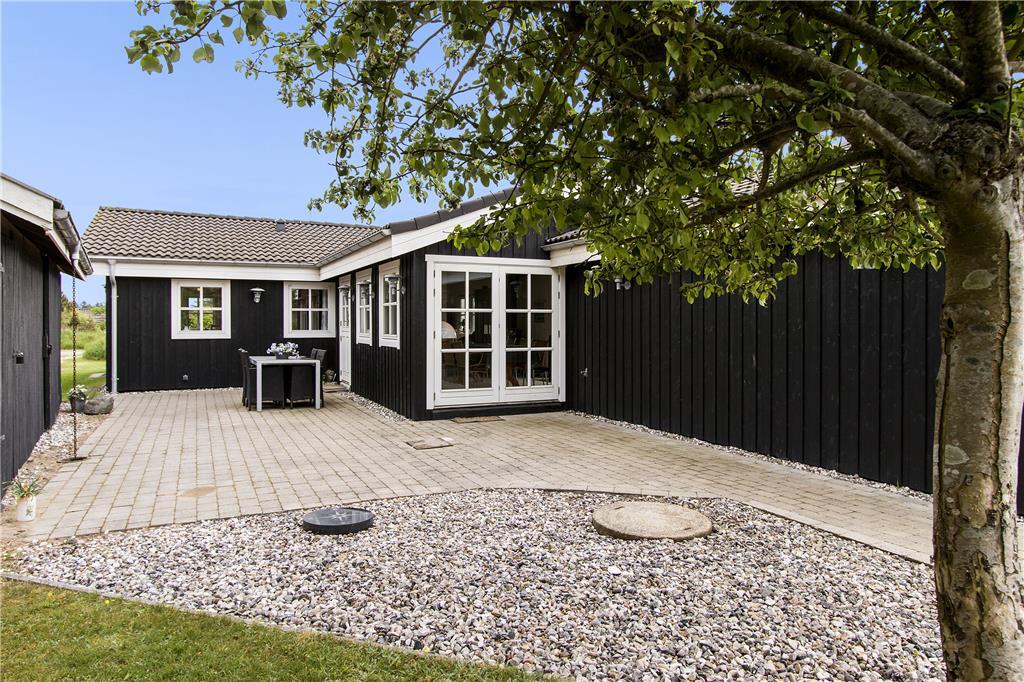 Om sommeren kan måltiderne selvfølgelig også oplagt nydes ude i det fri på de dejlige terrasser, der breder sig rundt om huset. Uanset tidspunktet af dagen er der gode chancer for at finde en solrig opholdsplads med læ, og hvis du hellere vil have skygge, kan du sætte dig ind under overdækningen eller slå parasollen op. Græsplænen på husets store grund kan bruges til både fangeleg og boldspil, hvis du vil aktivere ungerne eller hunden – og hvis de kan underholde sig selv, kan du tage en velfortjent pause, hælde endnu en kop kaffe op og læne dig tilbage i havestolen.