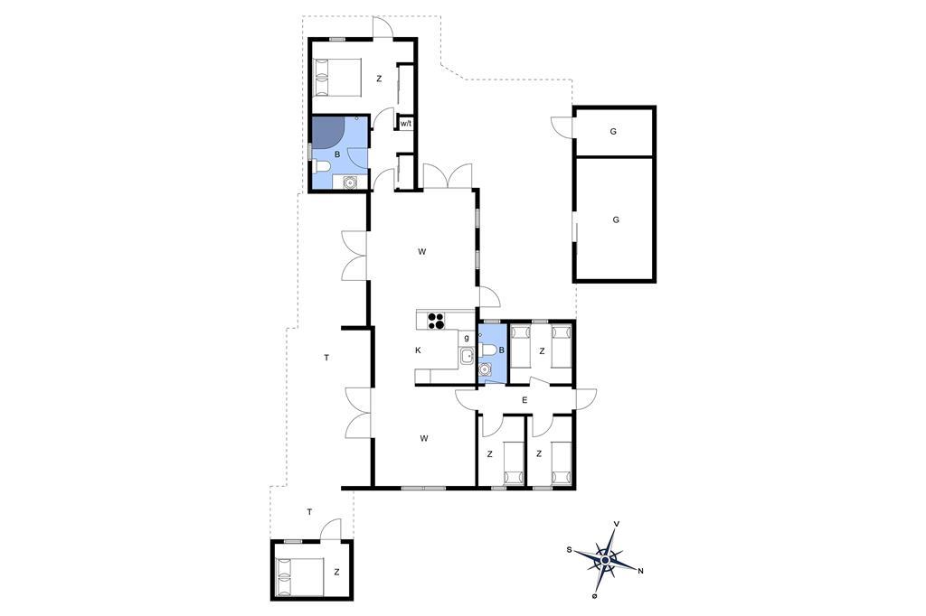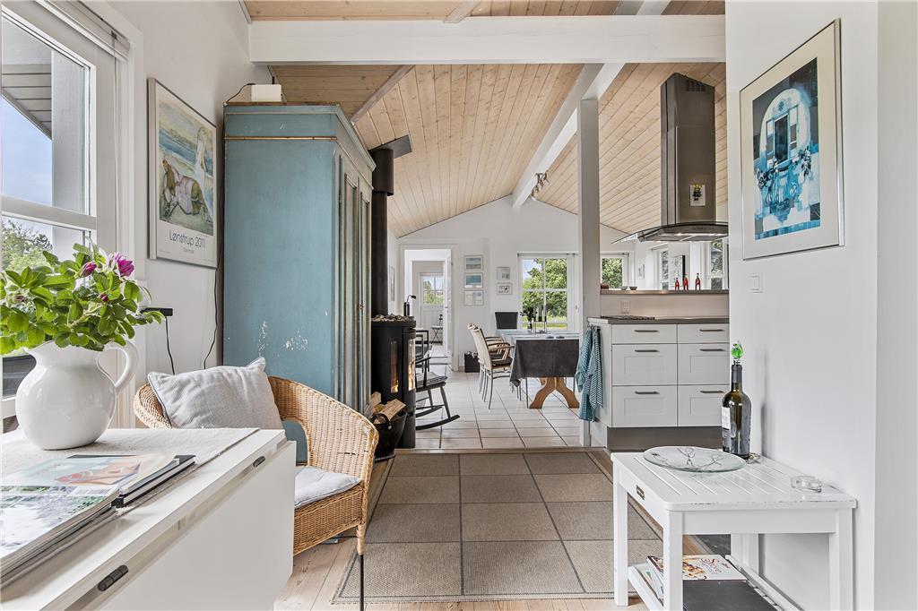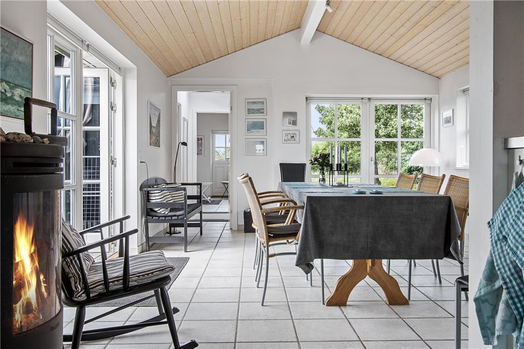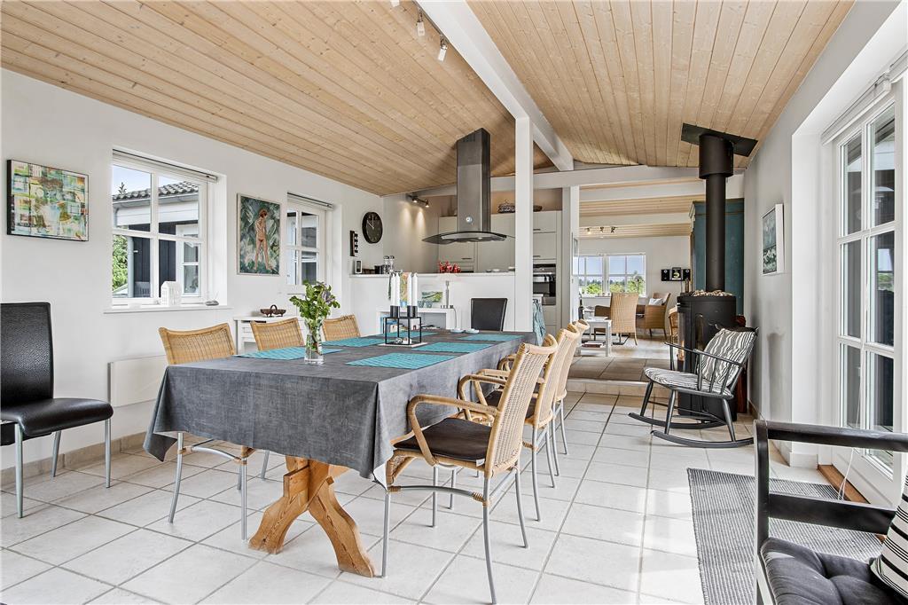 Sommerhuset har en mere rummelig og fleksibel planløsning end de fleste sekspersoners huse, for der er nemlig fire soveværelser inden døre plus ekstra sengepladser i annekset. Så hvis familiens teenager gerne vil sove for sig selv, kan værelsesfordelingen altså sagtens gå op. Det er også rart, at der er to badeværelser i huset, og så er det ene endda udstyret med et spabad, hvis du vil forkæle dig selv med en time eller to med tilbagelænet wellness. Er du vild med at lave mad, kan du glæde dig til at gå i gang med at kokkerere i husets veludstyrede og åbne køkken. Vil børnene hjælpe til, kan I nemt være flere om at bage boller eller lave lasagne, og når maden kommer ud af ovnen, er det skønt at samles rundt om spisebordet nær brændeovnen og med udsigt til den grønne have.