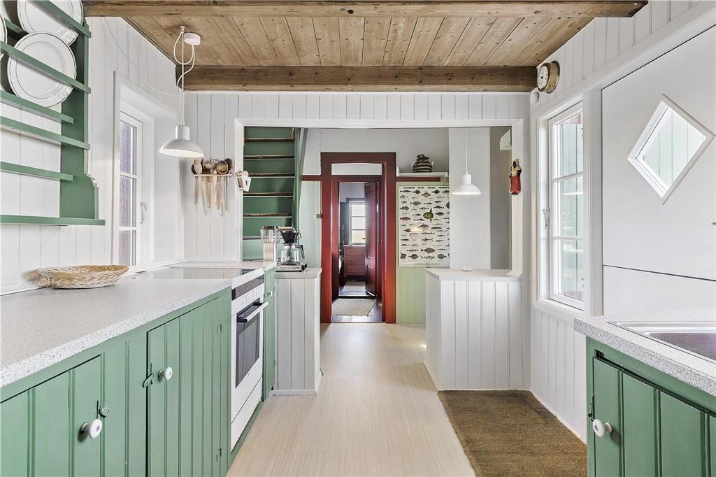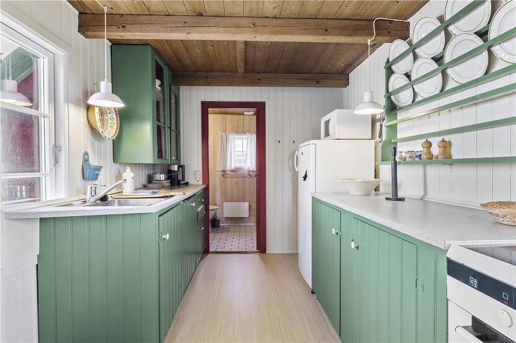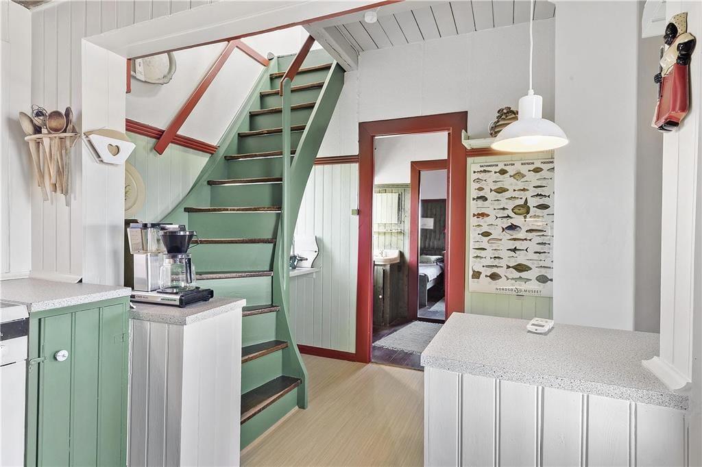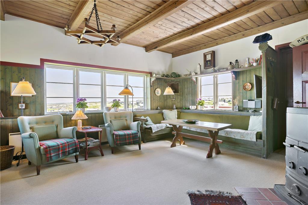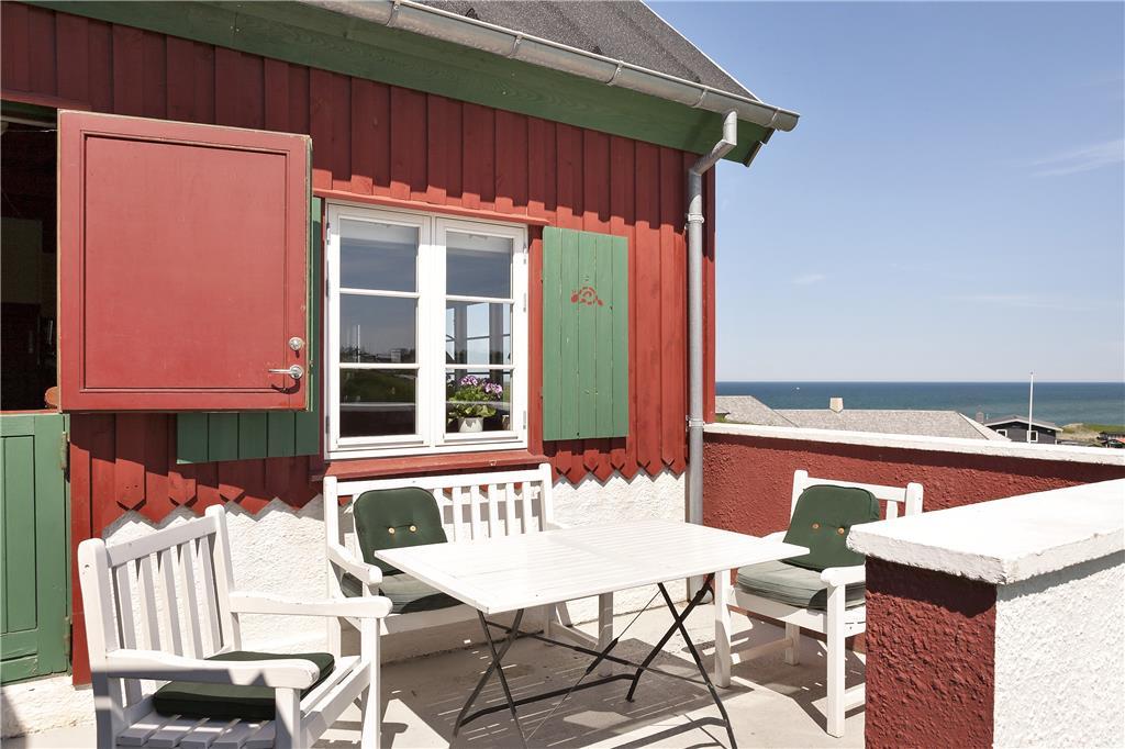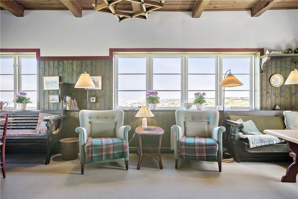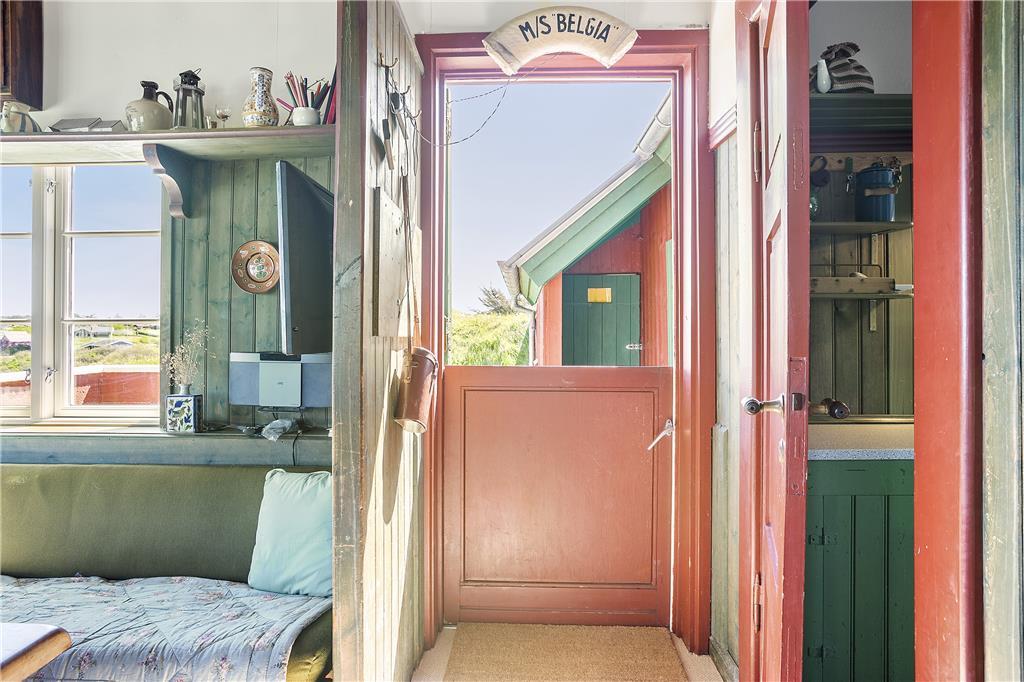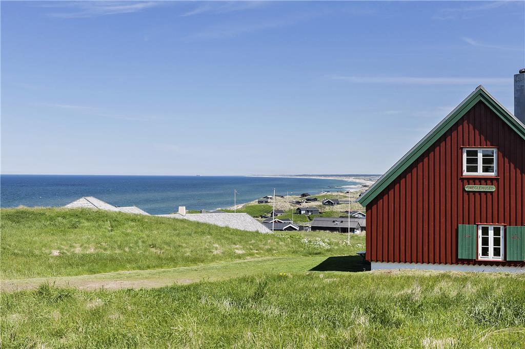 Når man træder ind i ’Sneglehuset’, føles det som at træde ind i en tidslomme og huset har da også været i den samme families eje siden 1928. Huset er gennem årene blevet nænsomt renoveret og det oprindelige udtryk er bevaret med paneler på væggene, originale træbænke, bjælker i loftet og mange velbevarede møbler – et sjældent sted med masser af sjæl og historie. Indgangen ligger ved køkkenet og herfra er der adgang til både badeværelset, førstesalen og den smukke stue. Førstesalen råder over to soveværelser med hhv. dobbelt og to enkeltsenge; fra begge soveværelser kan man nyde den fantastiske havudsigt i fulde drag. I forlængelse af køkkenet træder man ind i den charmerende stue med sofahjørne og spisekrog, herfra er der adgang til det tredje soveværelse, som er med dobbeltseng. Husets alder taget i betragtning er det ganske godt udstyret med moderne faciliteter; her er således opvaskemaskine, varmepumpe med køl, kabel-tv og internet, så man kan følge med i nyheder osv., men vi anbefaler, at man bruger det meste af sin ferie på at nyde den storslåede panoramaudsigt over havet med Hirtshals Fyr mod nord.