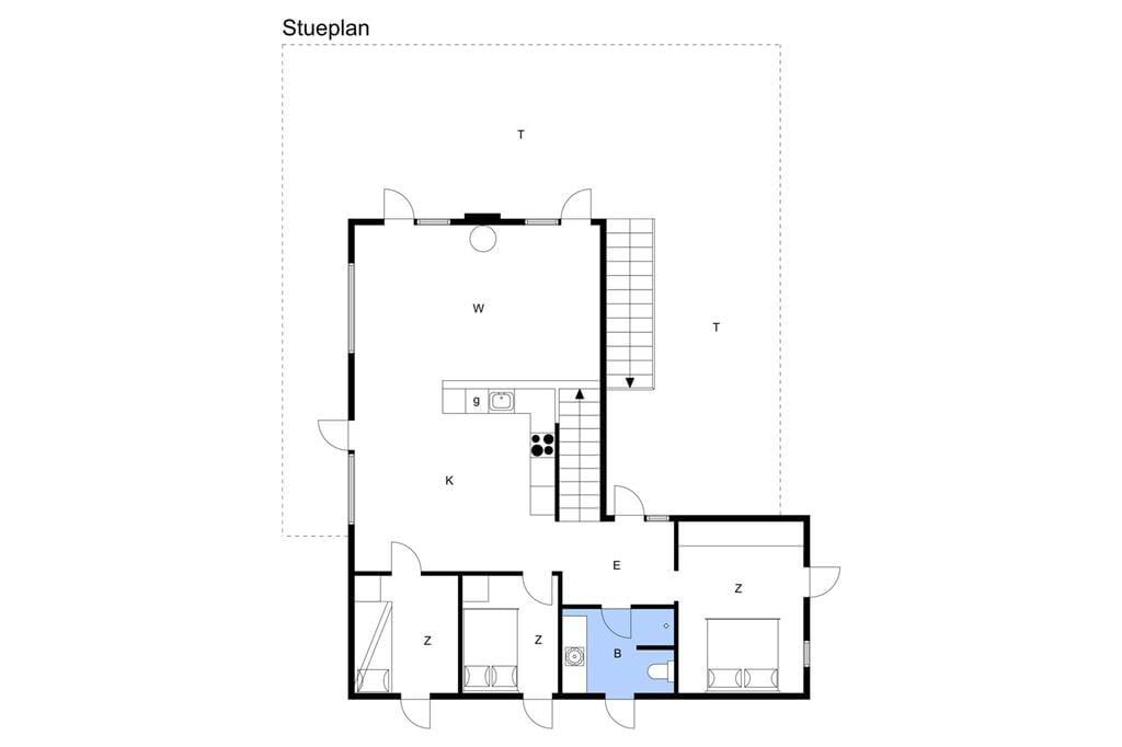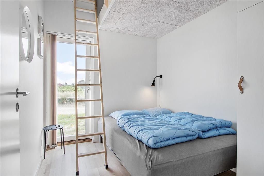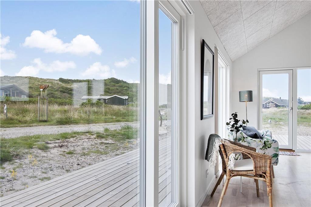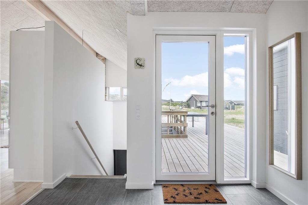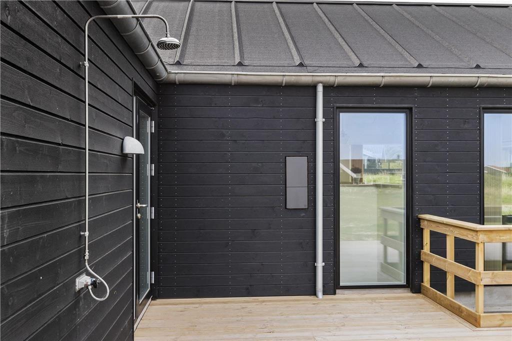 Rundt om tre af husets sider smyger sig en stor træterrasse. Der er intet, der skygger for solen, så I kan nyde sommervejret dagen lang – og hvis I trænger til skygge, når I vil have en middagslur i liggestolene, kan I slå parasollen op. Udover komfortable havemøbler er der en grill til rådighed, og der er desuden en udendørs bruser, så I kan skylle saltvandet af jer efter badeturene i Vesterhavet.