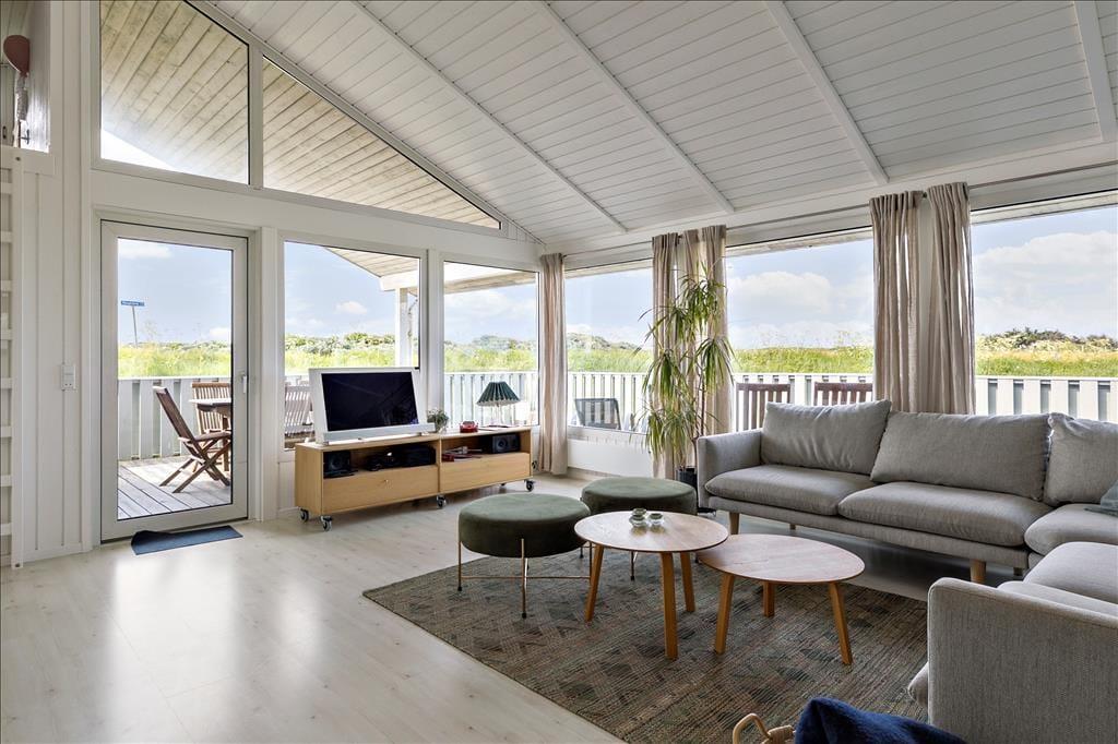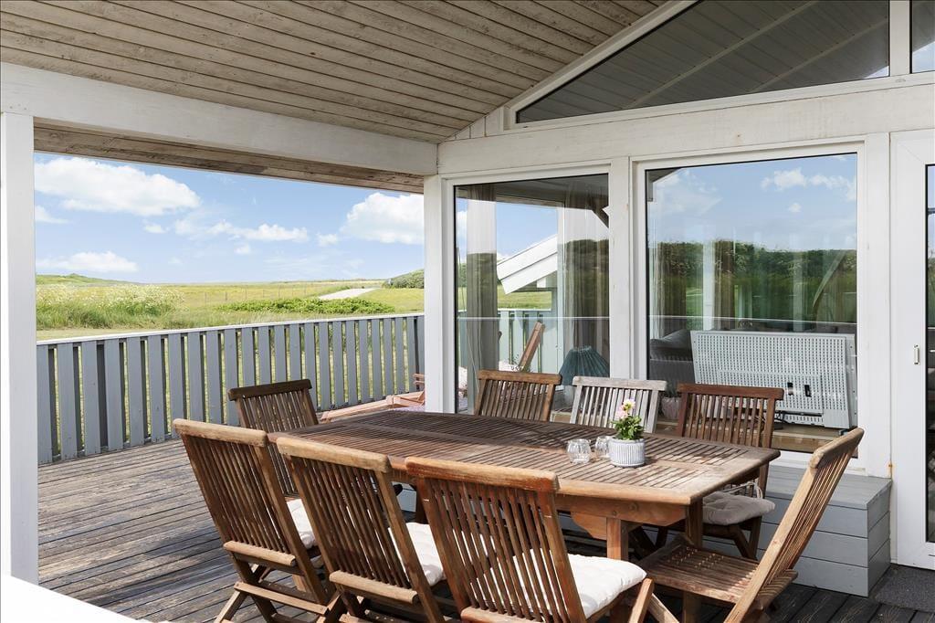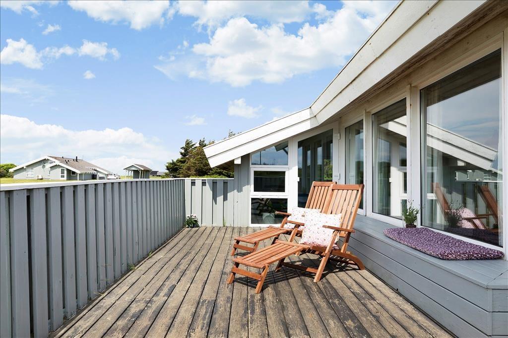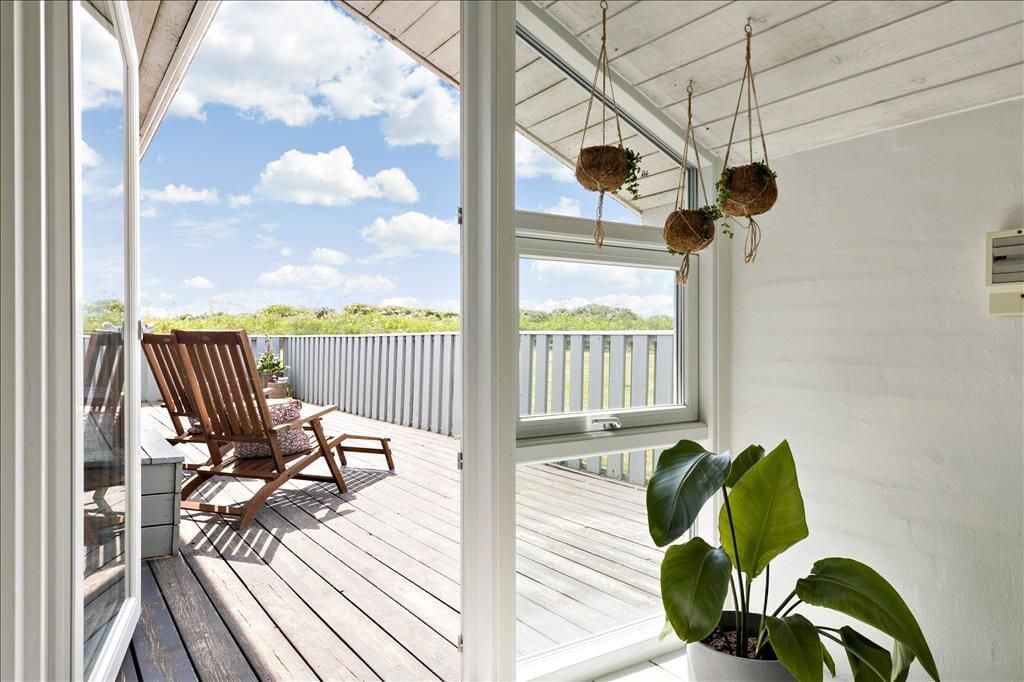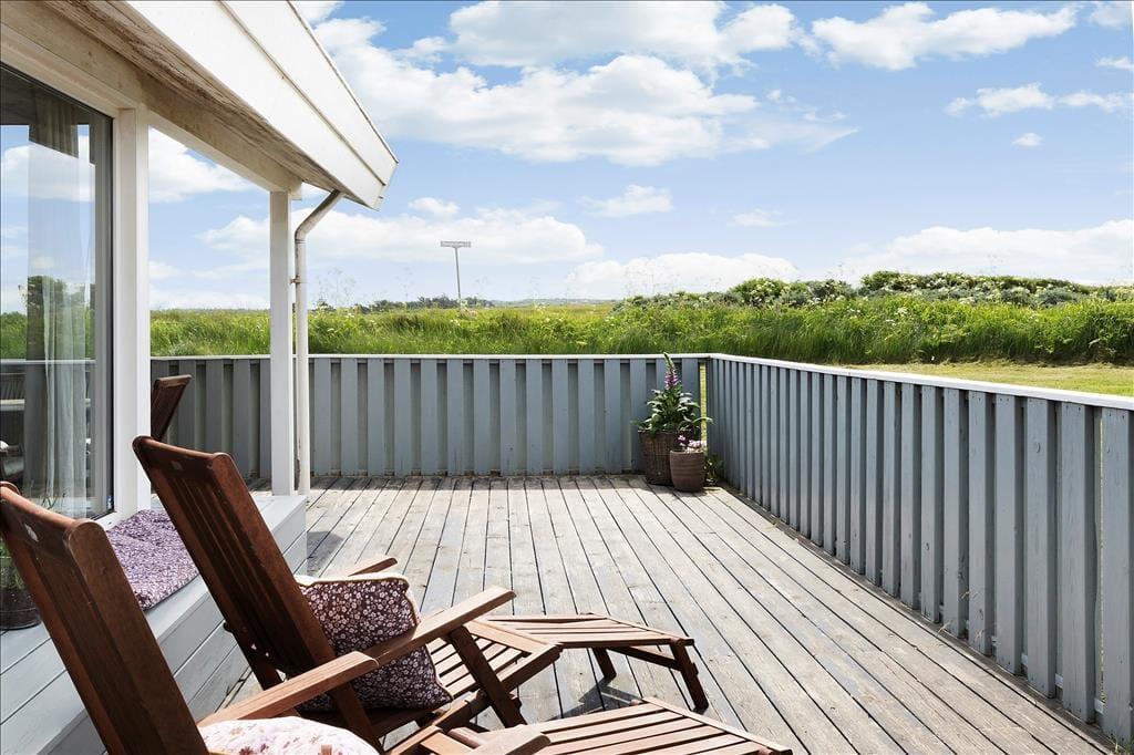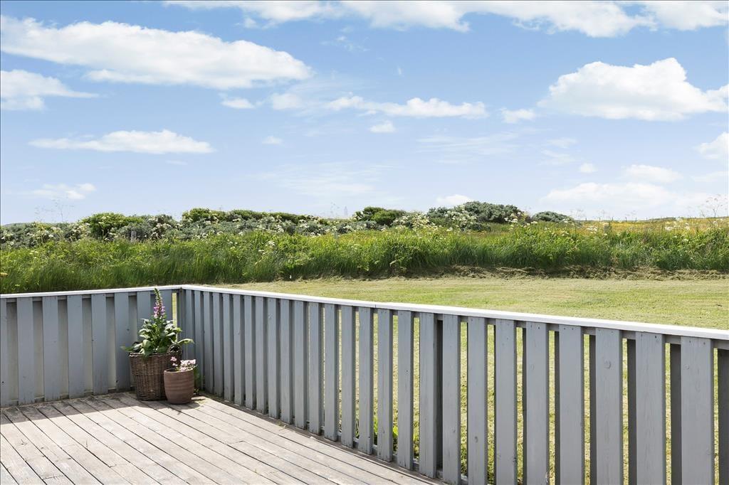 Leg og hygge kan oplagt foregå ude i det fri, når solen skinner over Lønstrup. På den 1.992 m2 grund er der sandkasse og gynger til børnene, og græsplænen er glimrende at boltre sig på. Vil I hellere slappe af i en god havestol, er der terrasser både øst og vest for sommerhuset – og her skal den vestvendte især fremhæves, for den er ikke bare stor og delvist overdækket, men ligger med udsigt over det åbne landskab.