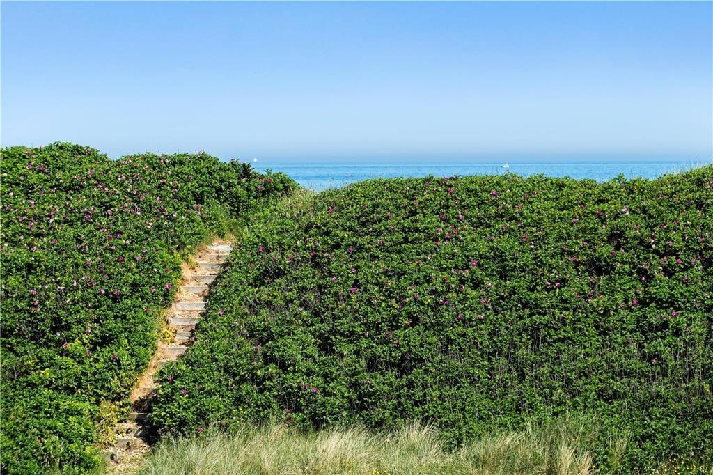 På den kuperede grund er det nemt at finde en dejlig opholdsplads i solen. Rundt om sommerhuset er der flere terrasseområder at vælge imellem, inklusiv et overdækket areal, hvis I trænger til skygge. I kan også sætte jer ved bord-bænke-sættet på græsplænen eller tage trappen op til en lille bænk – det er en dejligt fredelig plet, hvor I kan nyde duften af hybenroser og den smukke havudsigt, mens I slapper fuldstændigt af.