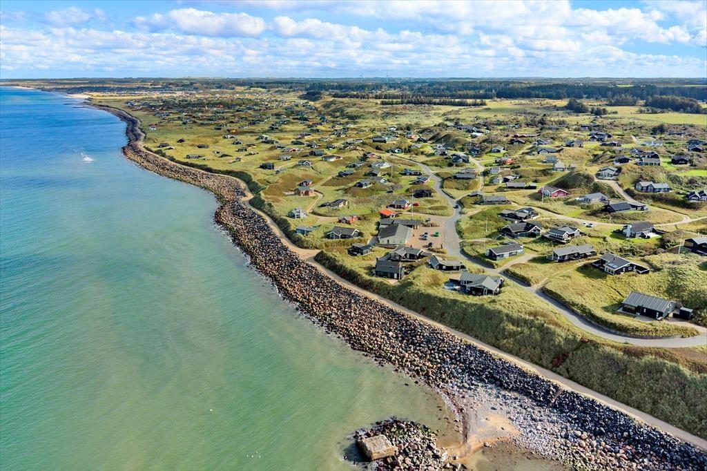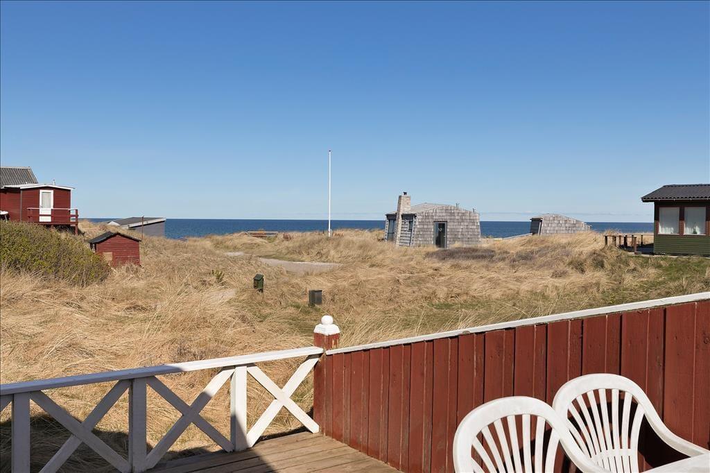 Hvis I drømmer om at holde ferie ved vandet, har I kig på det helt rette hus: 65 meter er alt, hvad I skal tilbagelægge for at komme fra sommerhuset til stranden, og selv når I opholder jer inden døre, har I udsigt til Vesterhavet.