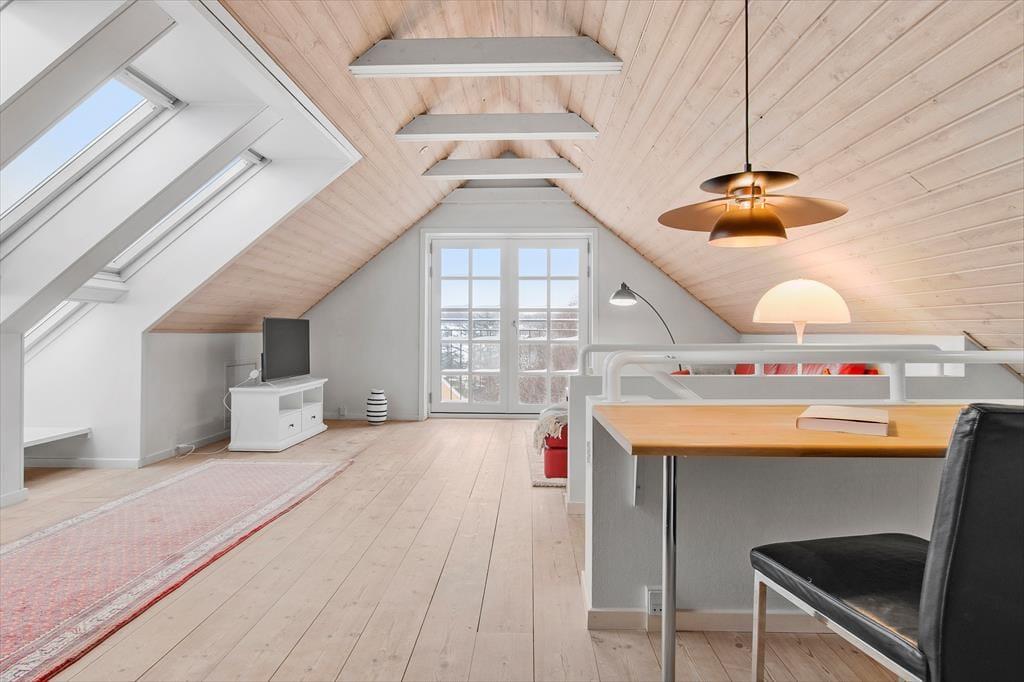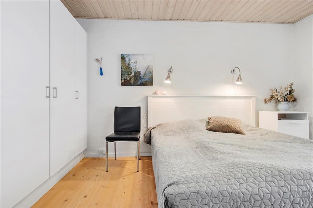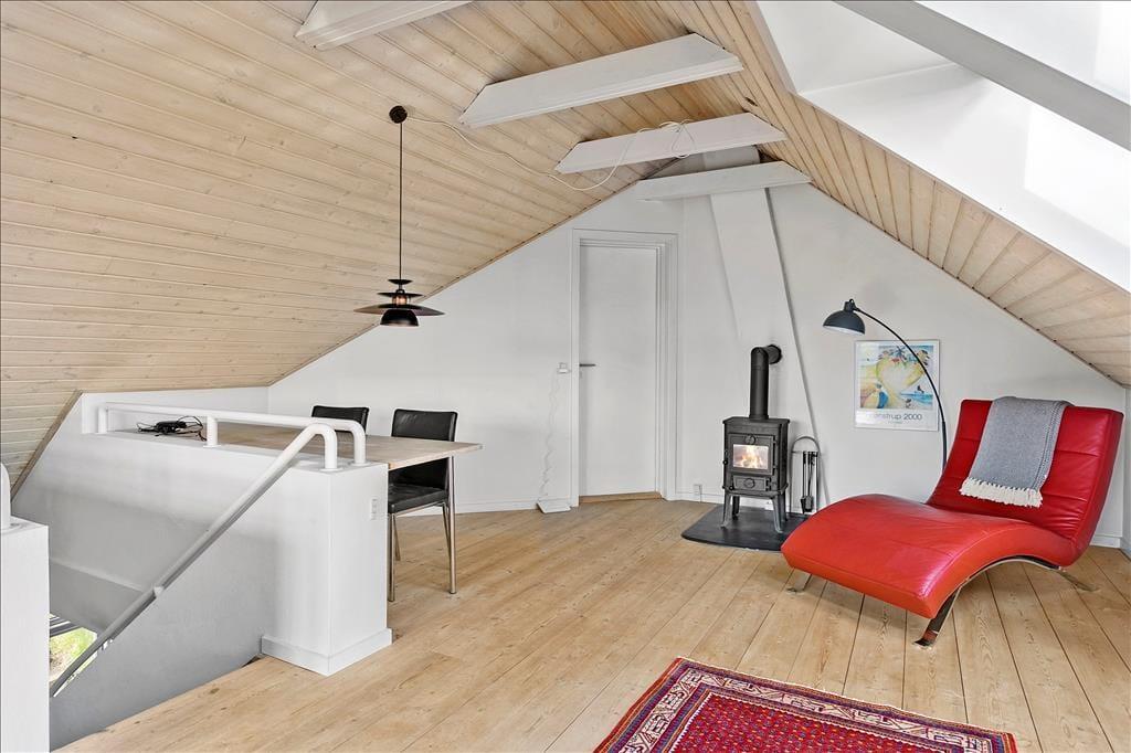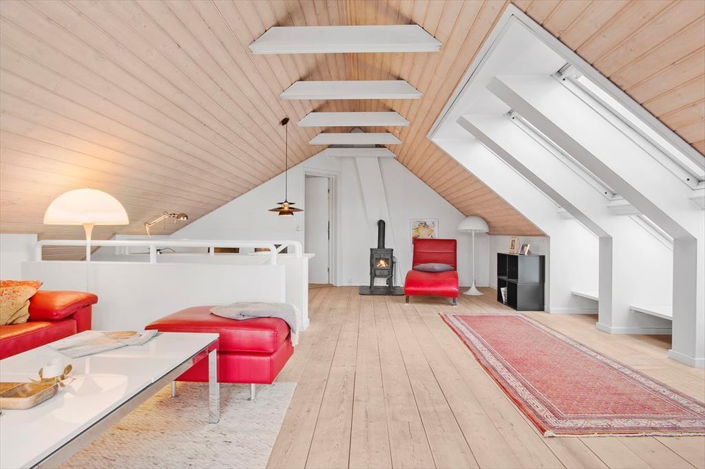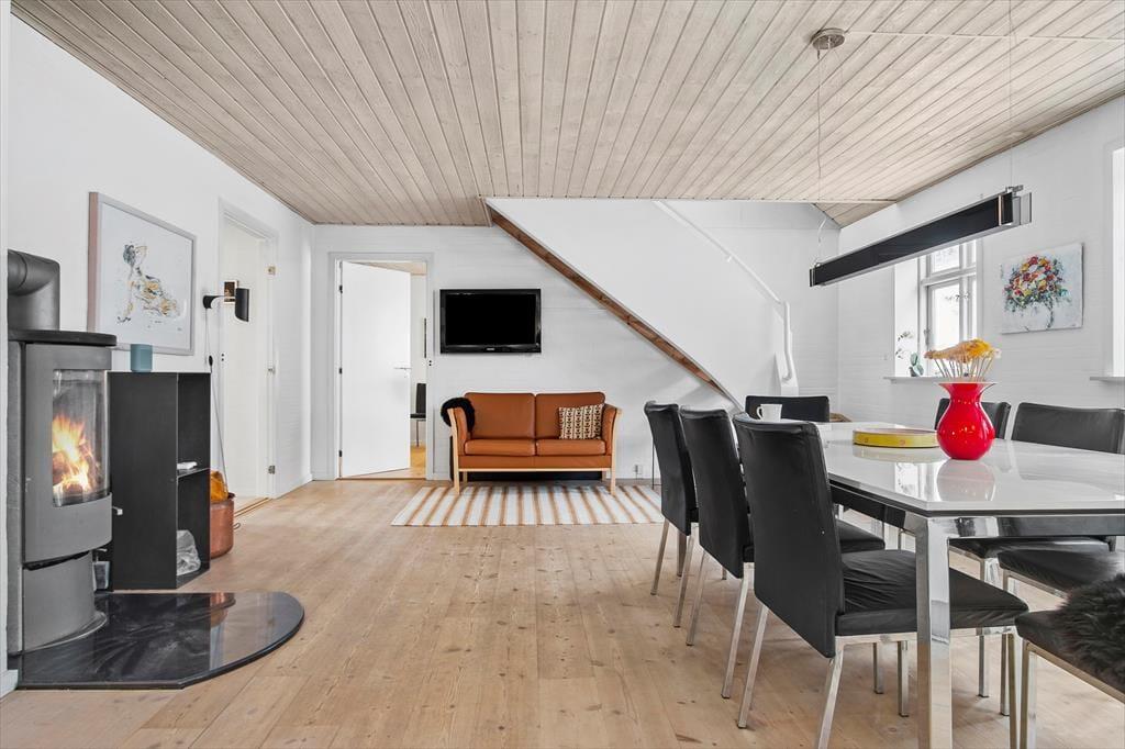 Nærmere præcist er der tale om et halvt dobbelthus, som har et ganske klassisk ydre med gul facade og rødt tegltag – selvom det er et nyere byggeri, der tilmed er blevet renoveret i 2015. Indretningen er lys og moderne, og med 122 m2 fordelt på to etager er der god plads til at folde ferielivet ud. For eksempel kan I hygge jer i stueetagens flotte køkken-alrum med lækker mad, gode samtaler og ild i brændeovnen. Alternativt kan I rykke op i førstesalens stue, hvor der også er brændeovn – og her bliver I endda belønnet med det fineste lysindfald og en skøn udsigt over Lønstrup. Huset byder også på tre gode soveværelser, der alle er indrettet med dobbeltseng, og et badeværelse og et bryggers hører også med til den velfungerende planløsning.