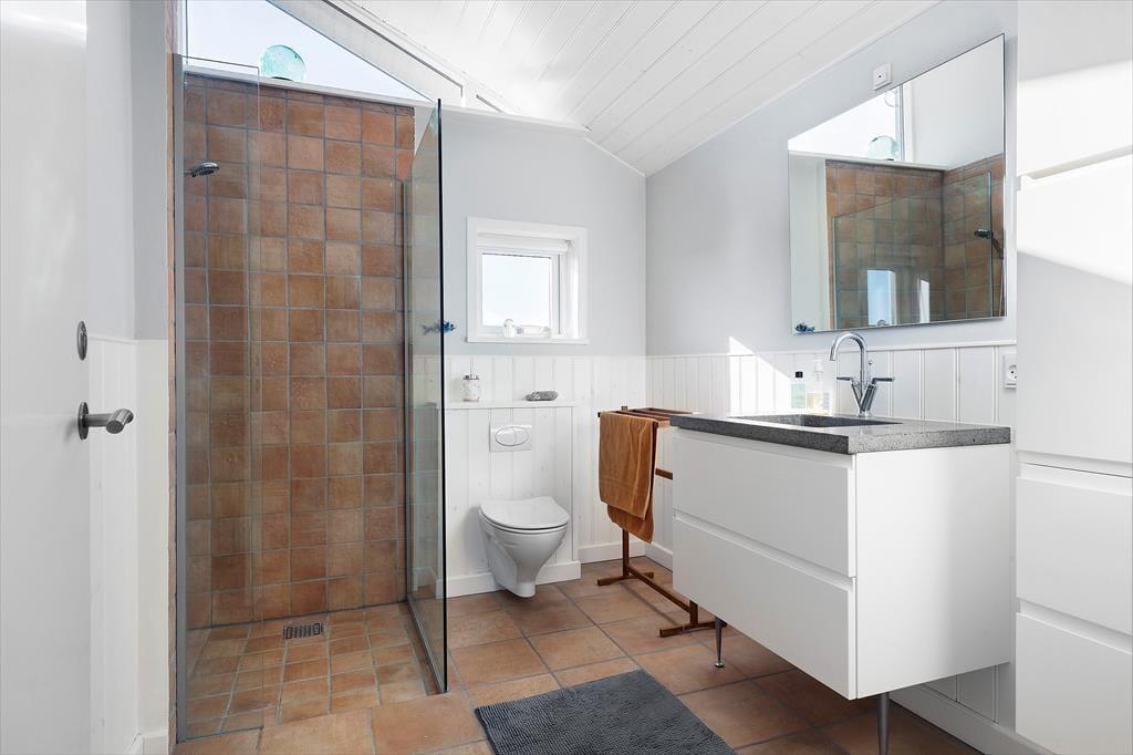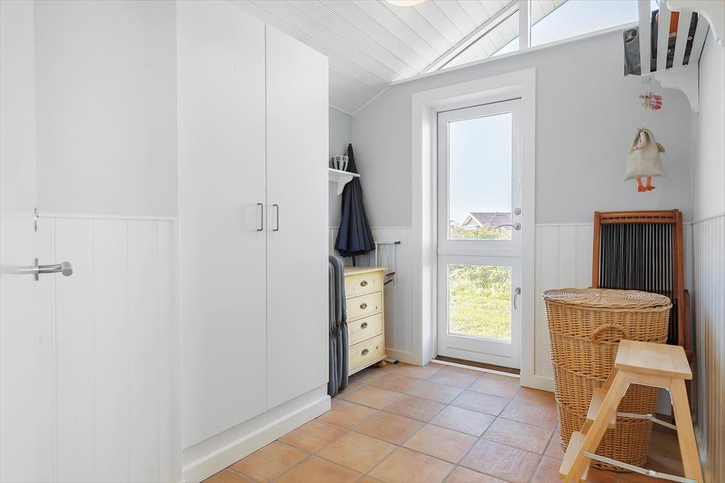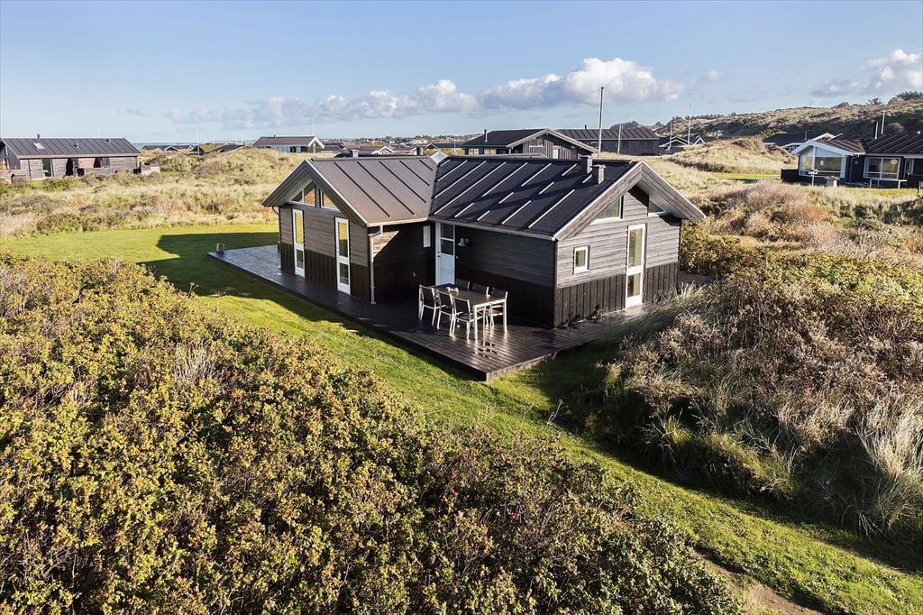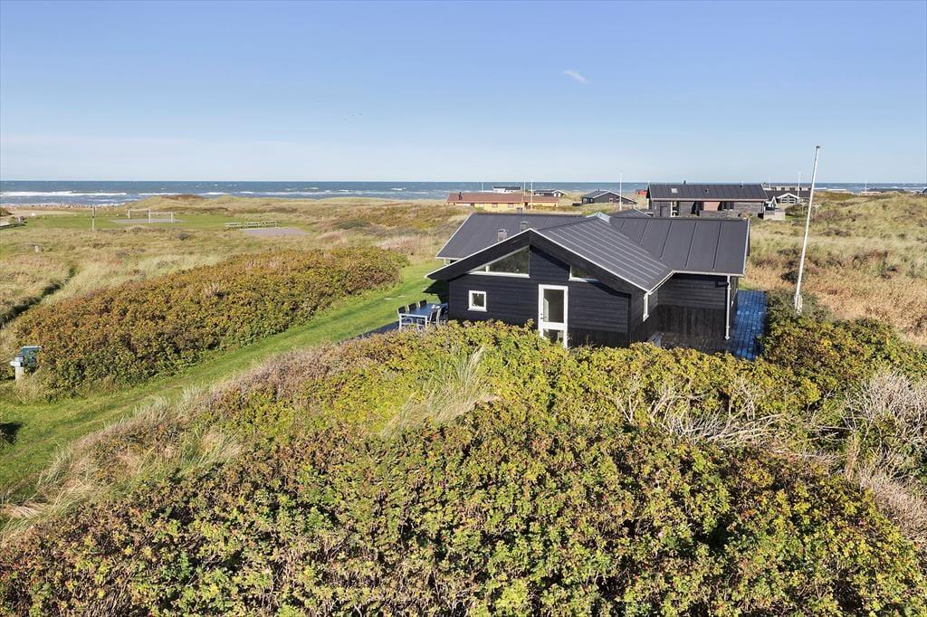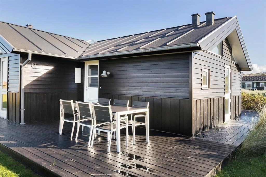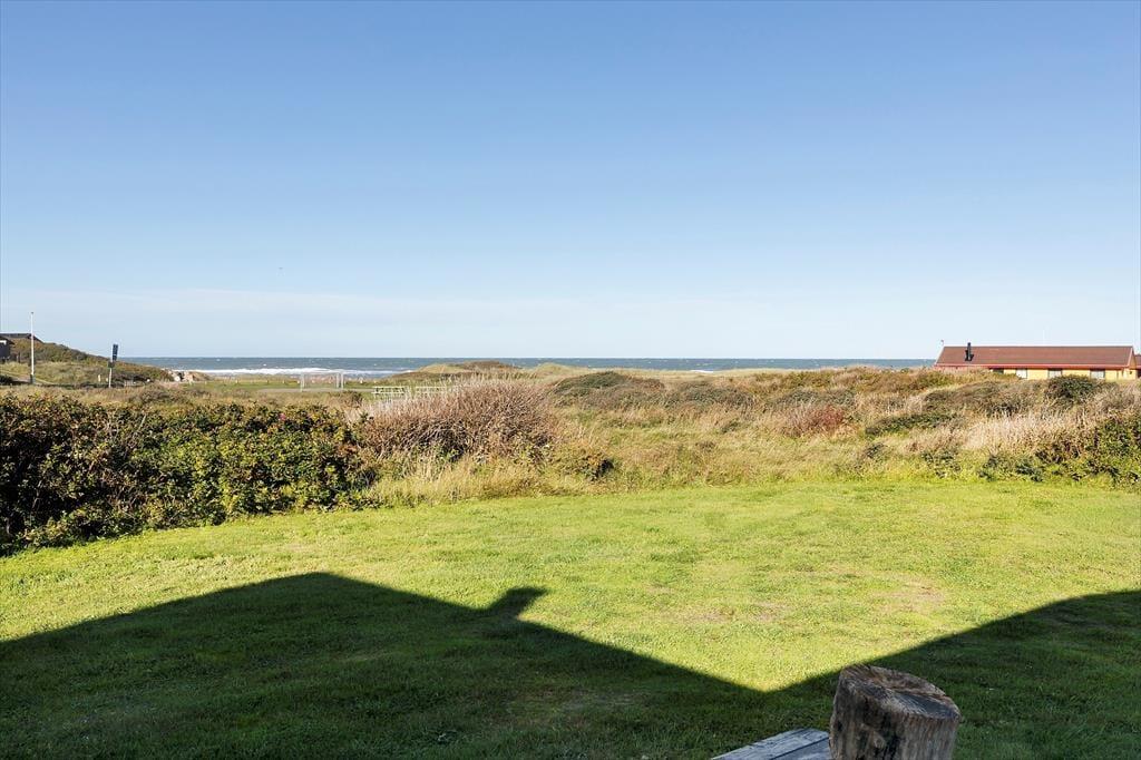 Rundt om sommerhuset breder et stort terrassemiljø sig, så I kan lige tage bestik af sol- og vindforhold, inden I slå jer ned i havemøblerne. Det er skønt at sidde her under den blå himmel og med udsigt til kyststrækningen, og hvis synet af Vesterhavet giver jer lyst til en badetur, tager det kun et øjeblik at gå fra naturgrunden og ned til stranden.