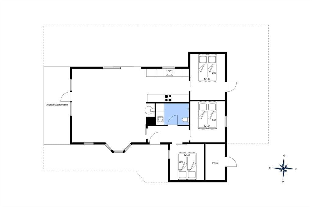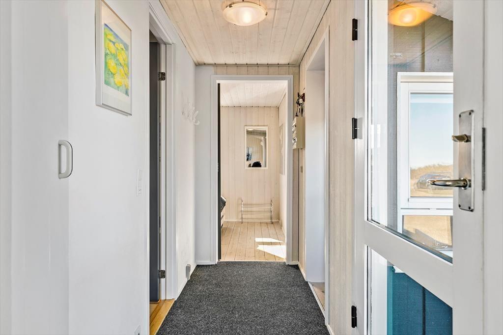 Huset er et klassisk sommerhus med sortmalet træfacade og hvide vinduesrammer. Det charmerende førstehåndsindtryk fortsætter indenfor, hvor man straks føler sig hjemme. Husets hjerte er den hyggelige opholdsstue og køkken, som er forbundet i et åbent rum med loft til kip. De lyse trævægge og lofter skaber en let og luftig nordisk stemning, og de store vinduer lader masser af naturligt lys strømme ind. Fra stuen har I en smuk udsigt over landskabet med Vesterhavet som baggrund. Køkkenet er moderne og godt udstyret, så I nemt kan tilberede feriens måltider. Huset har tre soverum, alle med dobbeltsenge, samt et badeværelse med brusebad og vaskefaciliteter.