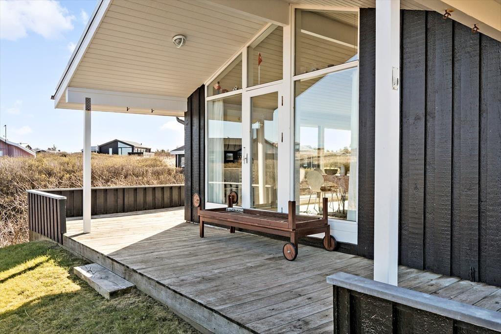 Der er dejlige terrasser omkring huset, hvor I kan nyde solen og den fantastiske udsigt. Her finder I altid et sted med sol eller skygge, alt efter behov, og da huset ligger lige ved en slugt, er der ekstra fredeligt og privat. Børnene kan lege eller spille bold på den naturlige grund, der smelter sammen med det omkringliggende klitlandskab. Her får I masser af ro og fred, og Vesterhavet er så tæt på, at I kan nyde den friske, salte havluft fra terrassen.