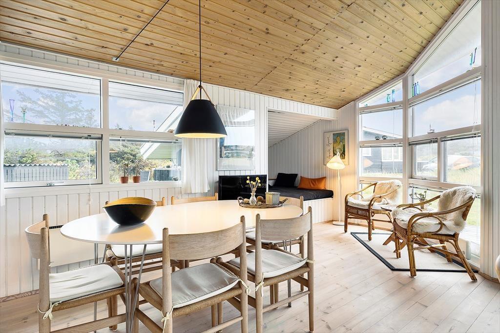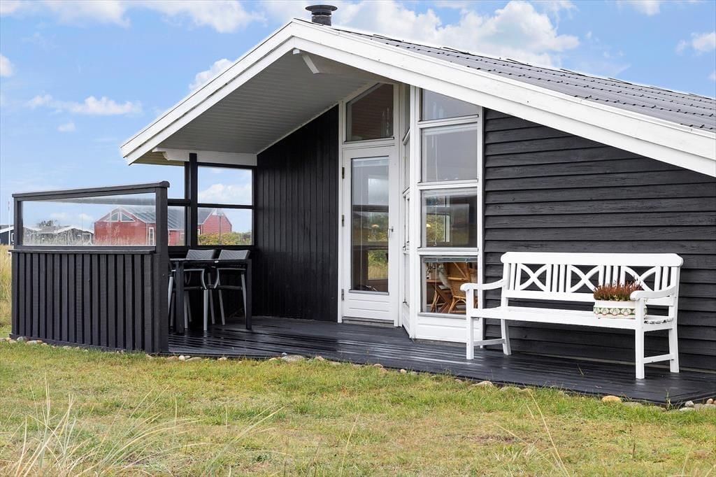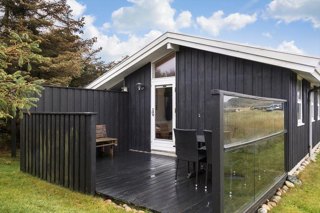 De naturskønne omgivelser kan også nydes ude i det fri. Omkring sommerhuset ligger tre dejlige terrasser, så I kan sætte jer lige der, hvor der er mest sol og læ. Terrasserne er delvist afskærmede, og med havemøbler, liggestole og grill til rådighed kan I se frem til et komfortabelt og afslappende udeliv.