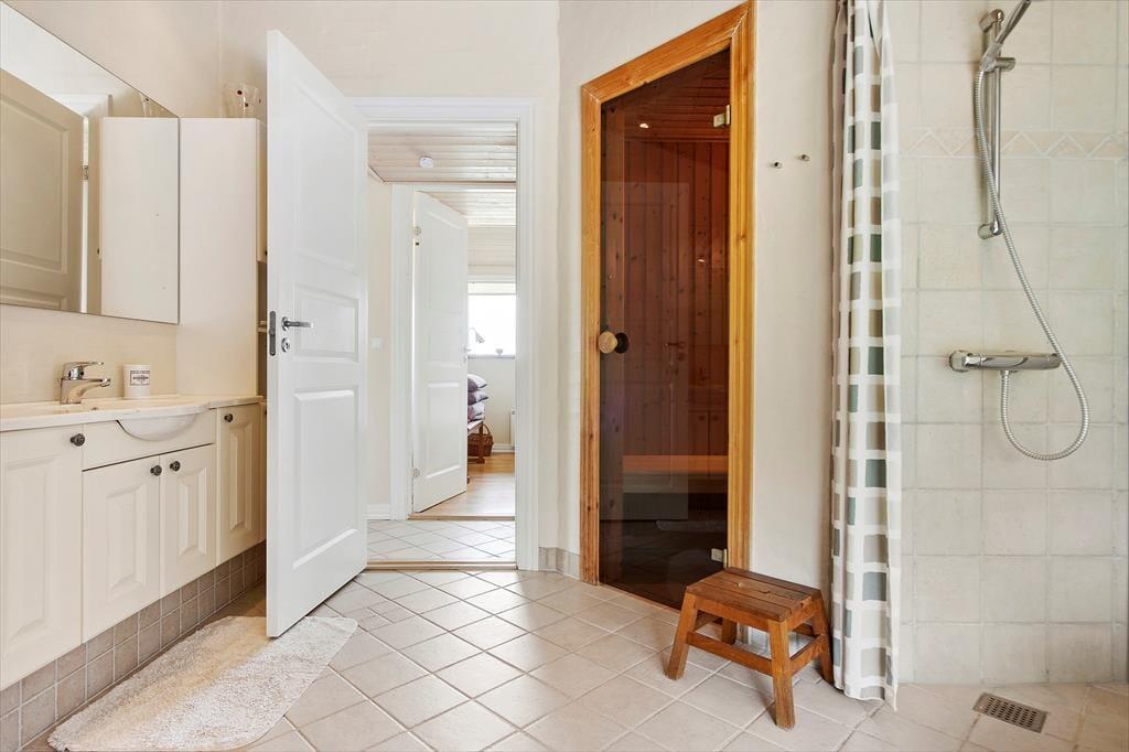 Der er nok at opleve i lokalområdet, men en stor del af ferien kan nu også sagtens foregå hjemme på Sneppevej 15. Det 84 m2 store sommerhus er opført i 2006, og det har en glimrende planløsning, der byder tre gode soveværelser, en praktisk entré og et wellnessbadeværelse med spabad og sauna. Når I ikke slapper af her i varmen, kan I samles i stuen, der er et dejligt opholdsrum med store vinduespartier og en indbydende atmosfære. Nær sofaafdelingen er der brændeovn og fladskærms-tv, og spisebordet står ganske praktisk nær køkkenet, så I nemt kan bære de velduftende gryder over, når maden står klar. Trænger I til fysiske aktiviteter efter måltidet, kan I rykke over i husets store anneks for at dyste i bordtennis. I annekset er der en sovesofa og et gæstetoilet, og alt i alt har I derfor god plads til seks personer på ferieadressen.