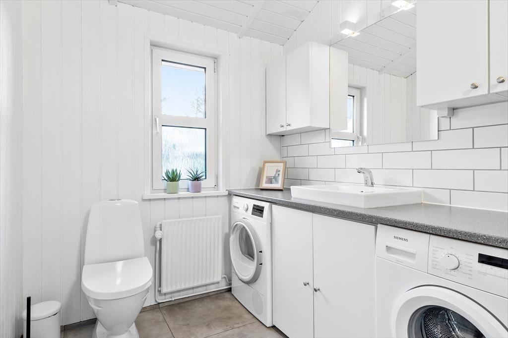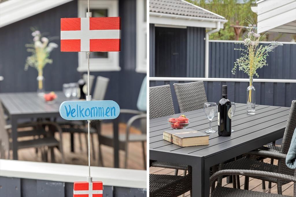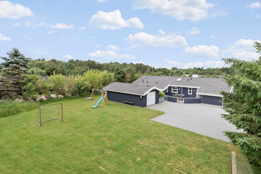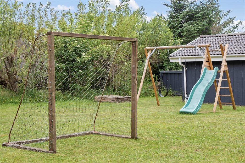 Ude i det fri er der godt at være på den 1450 m2 store grund, der omkranses af randbeplantning ind mod naboerne. Den grusbelagte indkørsel kan nemt give plads til flere biler, og på græsplænen kan I rigtigt boltre jer. Her er der to fodboldmål, så hele familien kan vise, hvad de dur til med en bold, og til børnene er der legestativ og sandkasse. Vil I hellere bare slappe af, er der to lukkede terrasser at vælge imellem, så I har gode chancer for at finde en opholdsplads i solen.