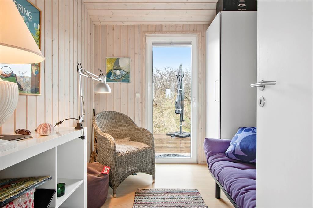 En dejlig træterrasse breder sig rundt om tre af sommerhusets sider, så der er gode chancer for at finde en opholdsplads i solen det meste af dagen. Vil I gerne blive siddende ude til langt ud på aftenen, kan I rykke ind under halvtaget, så I behøver ikke tænke på, om duggen falder. Og mon I ikke bagefter kan se frem til at sove godt efter en lang dag i Harerendens fredelige omgivelser og den friske, salte luft.