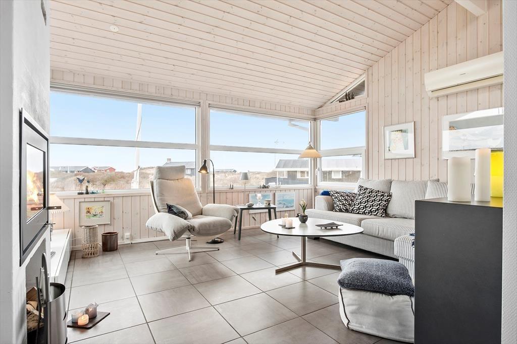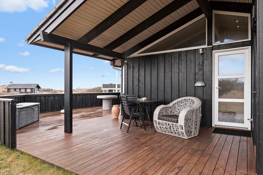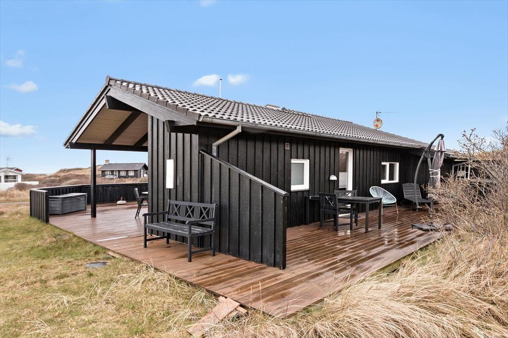 Fra sommerhuset er der ikke meget mere end 200 meter til Harerendens smukke kyststrækning og Vesterhavets blå bølger. En opkvikkende dukkert er måske lige det, I har drømt om, og ellers kan I lede efter flotte sten i vandkanten eller følge stien langs med kysten, enten mod Skallerup mod nord eller sydpå mod Lønstrups hyggelige bymidte. I Lønstrup har I et godt udvalg af spisesteder at vælge imellem, og de kunstinteresserede kan besøge byens fine gallerier og butikker med kunsthåndværk. Hvis husets spabad og sauna ikke rækker, kan I skrue op for wellnessfornemmelsen med et besøg i Skallerup Seaside Resort, og Skallerup Indlandsklitter og Rubjerg Knude er bare nogle af de lokale udflugtsmål, der indbyder til en vandretur eller en picnic i naturen.
