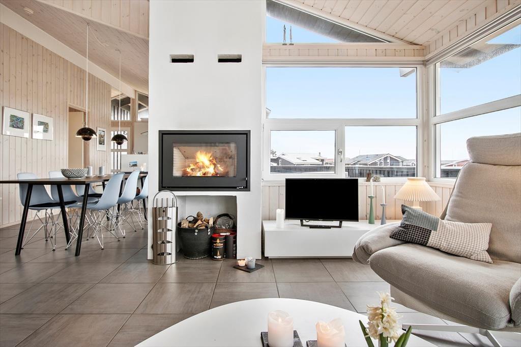 Spabadet, saunaen og stuens indbygningspejs er noget af det, der gør ferielivet ekstra hyggeligt og komfortabelt på Harerenden 64. Når I holder til i dette smagfuldt indrettede sommerhus, har I samtidig kort gåafstand til Vesterhavet, og der er masser at opleve i Lønstrup og omegn.