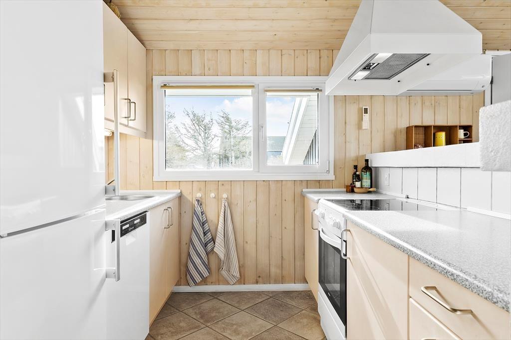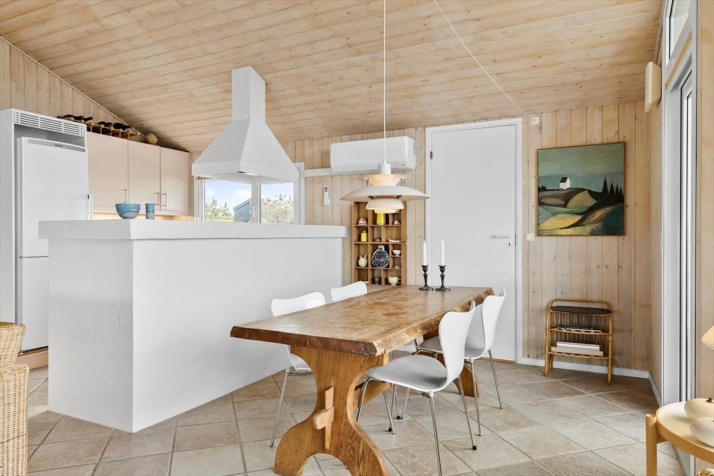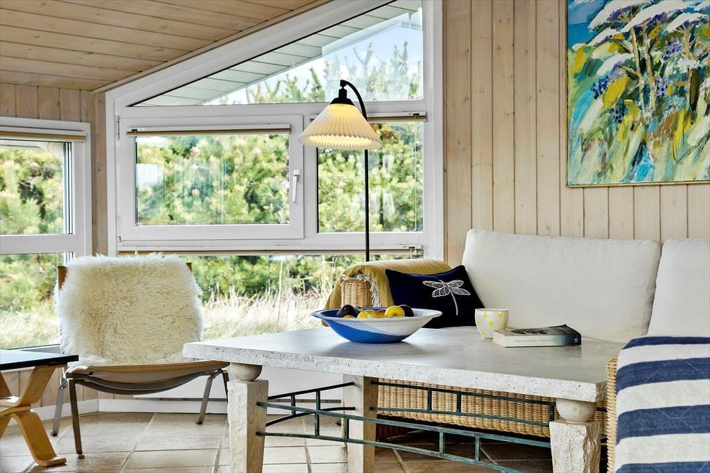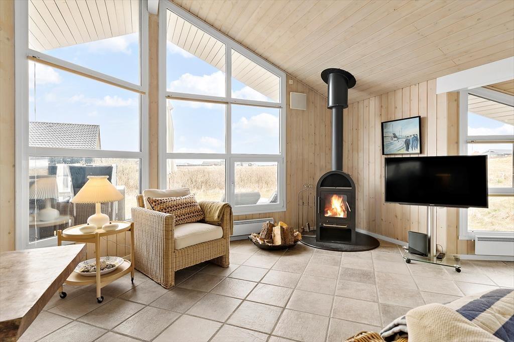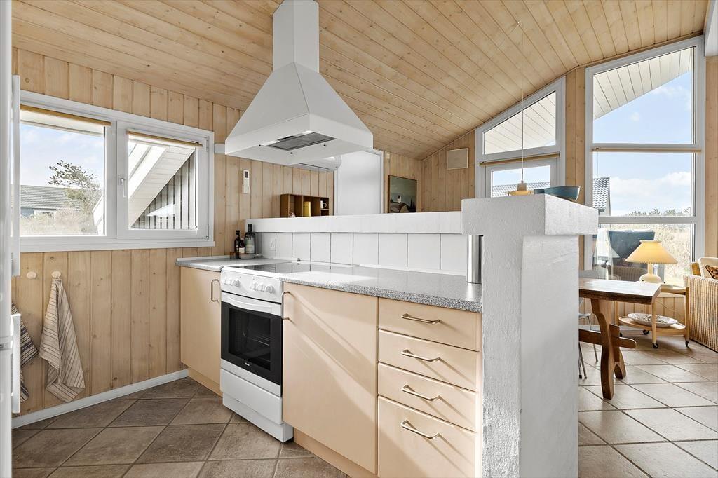I kan hurtigt føle jer hjemme i det 77 m2 store sommerhus, der byder på to gode soveværelser en skøn hems, hvor børnene kan hygge sig og et badeværelse med bruser og vaskemaskine. Et pænt køkken er integreret med stuen, så I kan hurtigt smutte hen for at se til simreretten på komfuret, når I spiller yatzy eller lægger puslespil ved spisebordet. Er I lige vendt hjem fra en blæsevejrsgåtur ved Vesterhavet, er det herligt at kunne tænde op i brændeovnen, inden I sætter jer godt til rette med en spændende roman eller jeres yndlingsserie på fladskærms-tv’et – med mindre I bare lader tankerne flyve, mens I kigger ud på de naturskønne omgivelser.