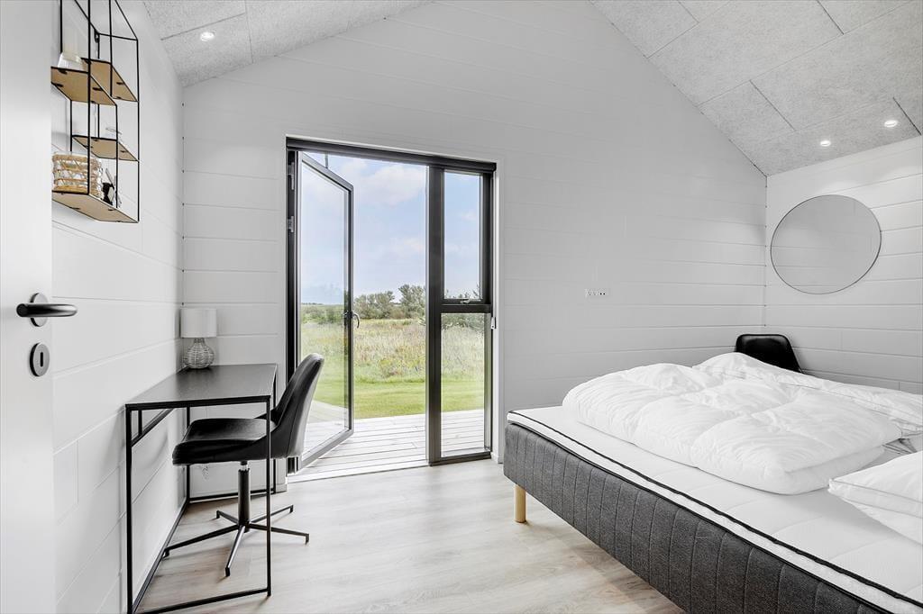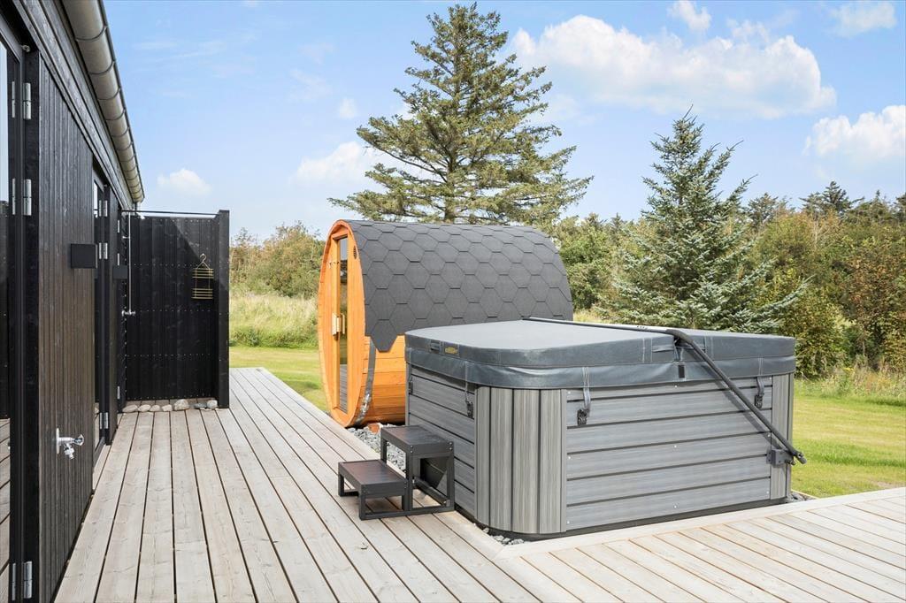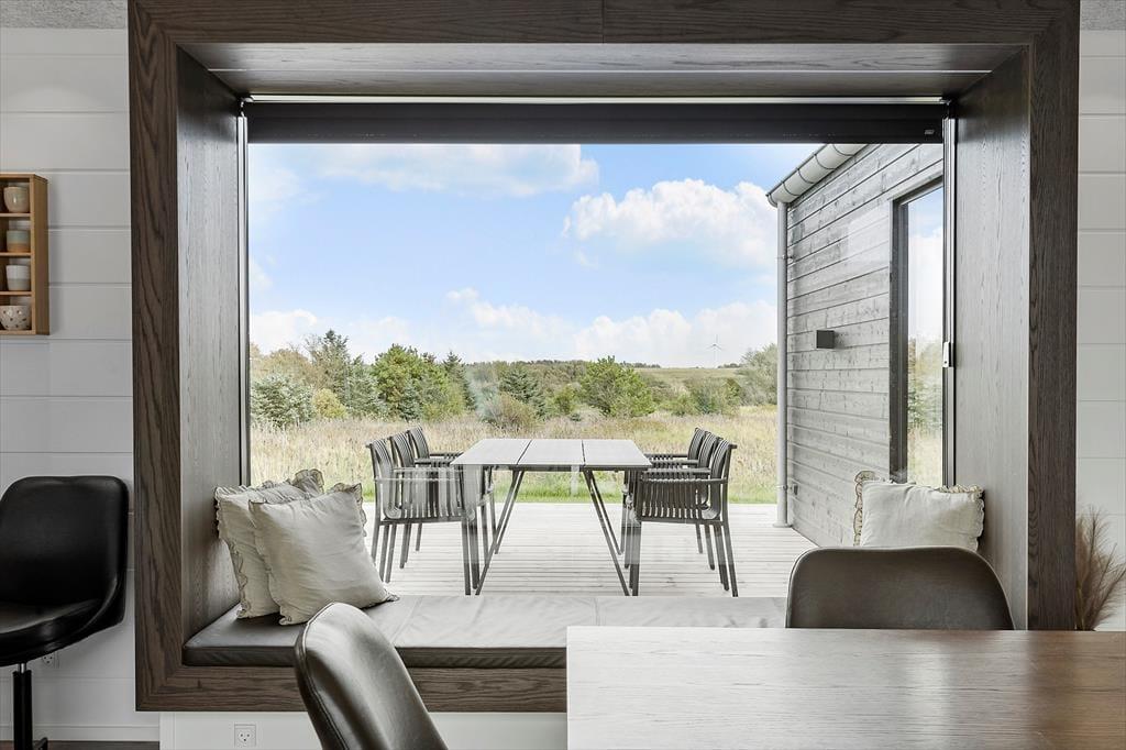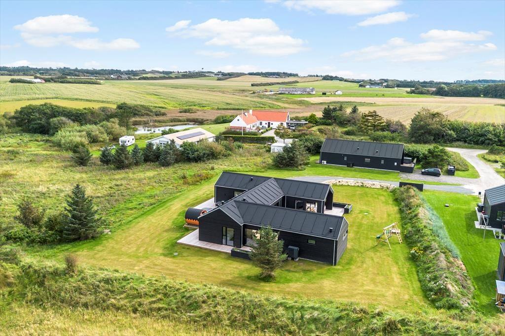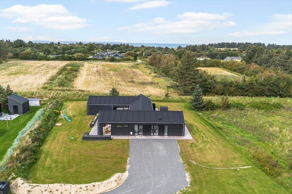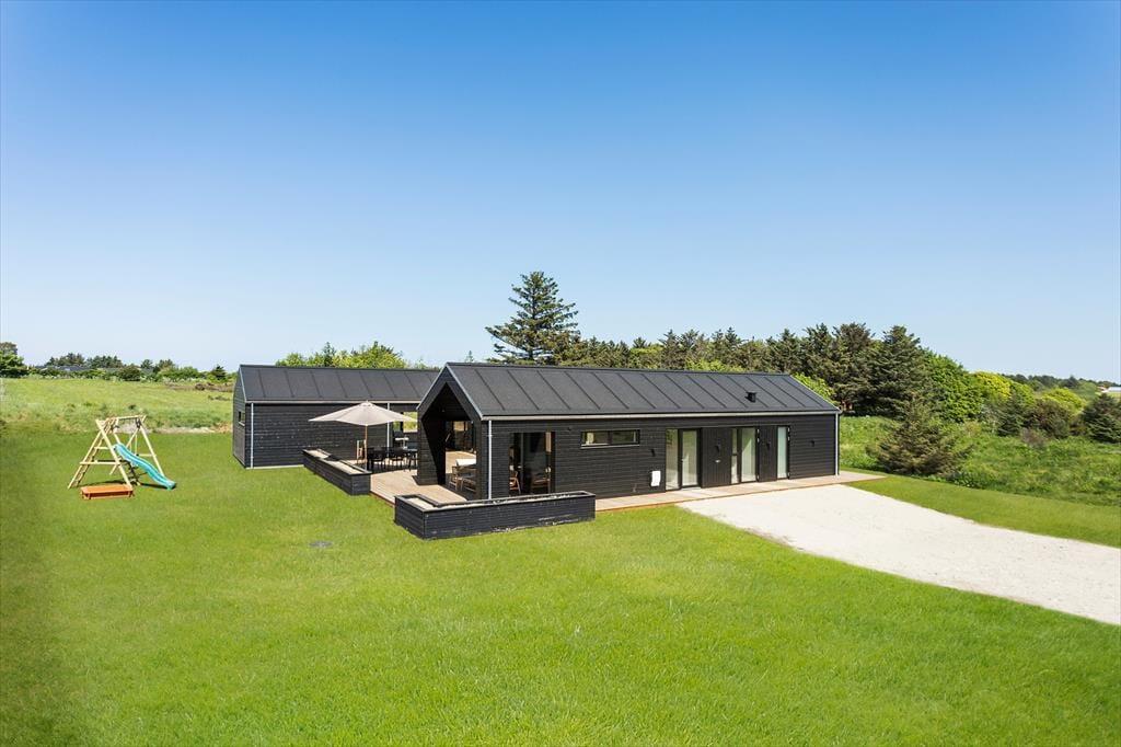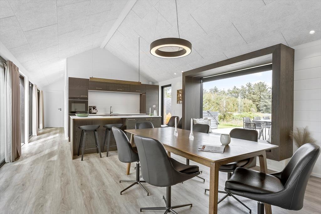 Huset er opført i 2024 i en enkel og minimalistisk stil, der sender en kærlig hilsen til den klassiske sortmalede sommerhusæstetik. Indenfor er der lyst og lækkert, og kiplofterne bidrager sammen med den åbne planløsning og de store vinduespartier til den venlige og indbydende atmosfære. Her føler man sig med det samme godt tilpas, og de mange moderne bekvemmeligheder tilfører et luksuriøst strejf til ferien. I det åbne køkken får de kulinariske udfoldelser fine betingelser, og der er direkte adgang til terrasse og have fra husets opholdsareal. Der er også udgang til terrasse fra alle fire soveværelser – og det er en ekstra luksus at kunne træde direkte fra sengen og ud i dagens første solstråler. Huset indeholder desuden et anneks med et herligt aktivitetsrum, hvor du både finder bordtennis, bordfodbold og dartskive.