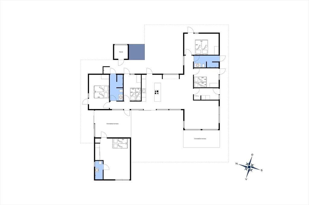Et stort terrassemiljø breder sig rundt om sommerhuset og tilbyder afslapning og solfyldte stunder mod alle verdenshjørner. Her er der mange muligheder for at dække op til morgenmad, frokost eller aftensmad i det fri – eller bare læne sig tilbage med en god krimi og glemme tid og sted. Dette er et sted, hvor man virkelige kan lade batterierne op og bare nyde de fredfyldte omgivelser, der omkranser huset. Grunden er på 1608 m2, så der er god plads at udfolde sig på for både store og små familiemedlemmer. Bemærk desuden, at terrassen mellem hovedhuset og annekset er overdækket, så udendørslivet kan nydes i al slags vejr.